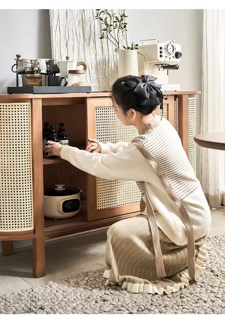 Mueble nórdico de pared para sala de estar, de madera maciza, para almacenamiento, multifuncional, de ratán y fresno.