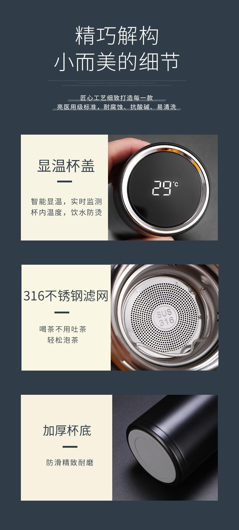 Regalos para Hombres y Mujeres, Taza Termo Inteligente Estilo Empresarial, Taza de Té de Oficina Portátil para Coche de Gran Capacidad, Vaso de Agua con Logo, Taza