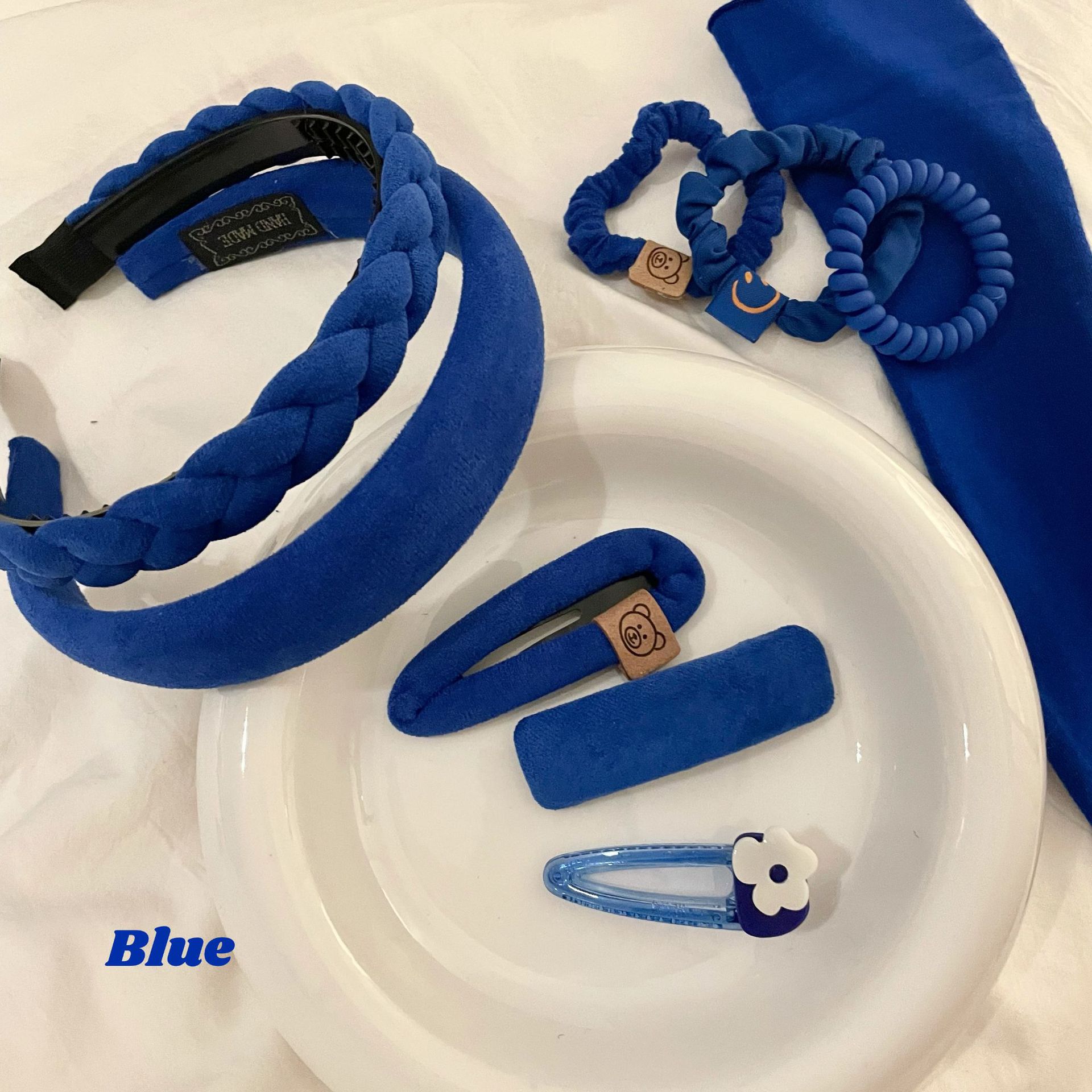 8# dark blue 2CM headband, 9# dark blue side card hairband, 11# blue flocking hairband, 12# blue 2CM hair hoop
