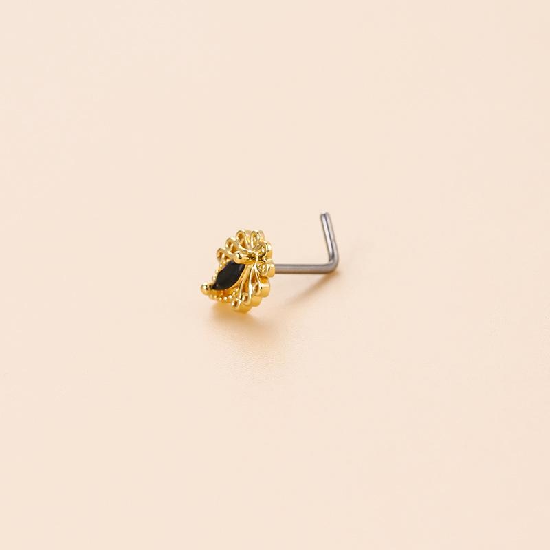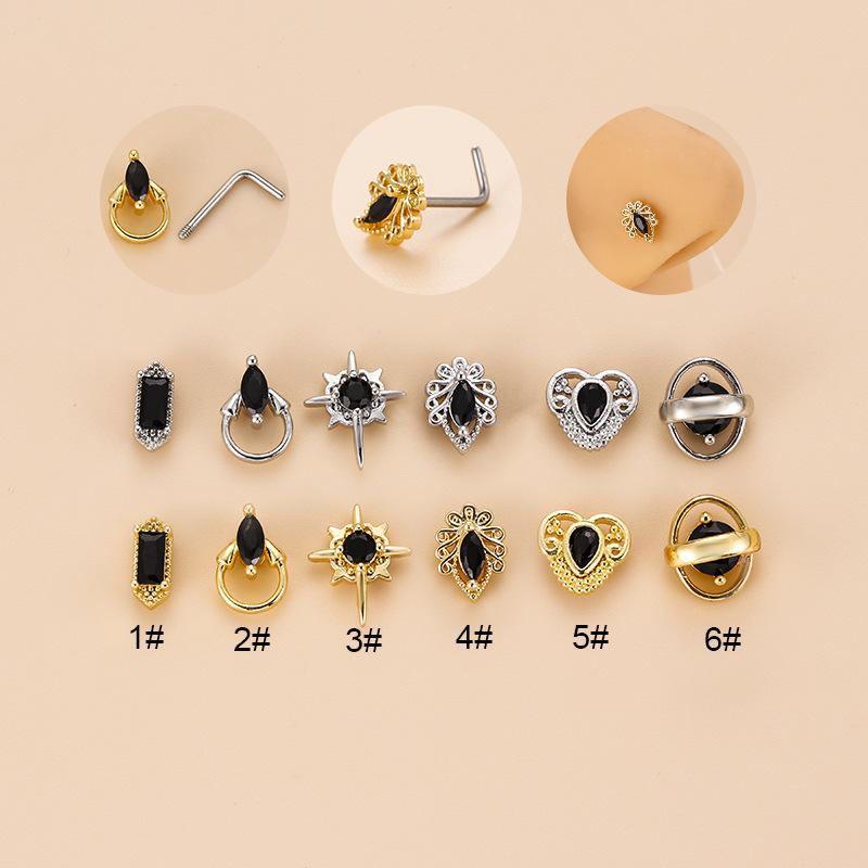 | nombre del producto | Retro circón negro oscuro acero inoxidable clavo para la nariz barra L popular europeo y americano comercio exterior piercing adornos para la nariz joyería de moda |