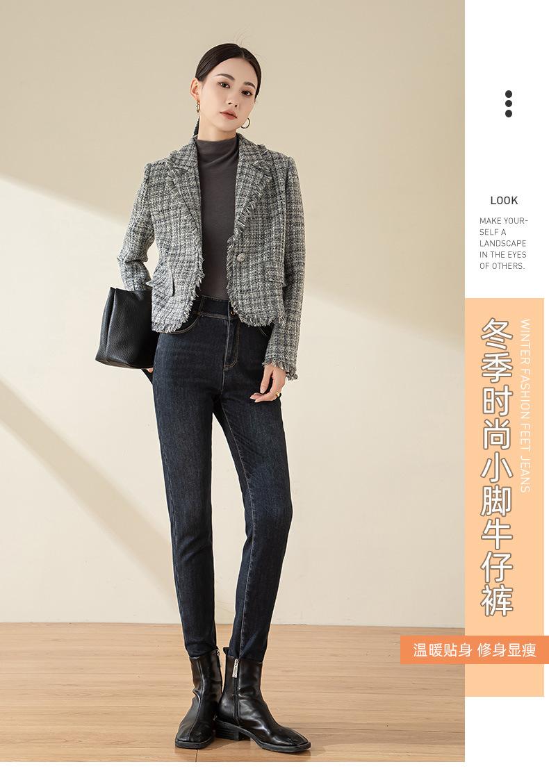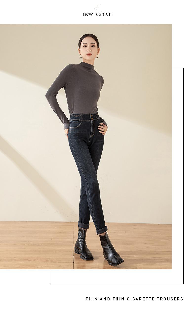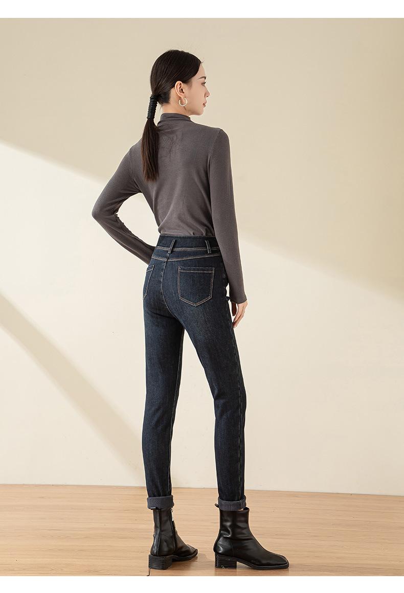 Pantalones vaqueros ajustados de cintura alta con forro polar para mujer, pantalones pitillo de invierno 2024, nuevos pantalones pitillo elásticos adelgazantes de corte entallado que combinan con todo.