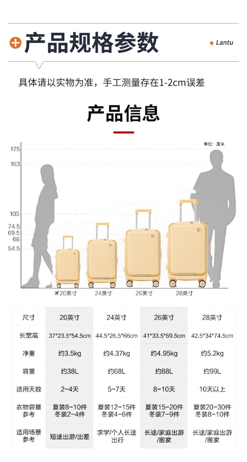 Waterproof, Anti-theft, Carry-on suitcase, Brake wheel, Front opening cover