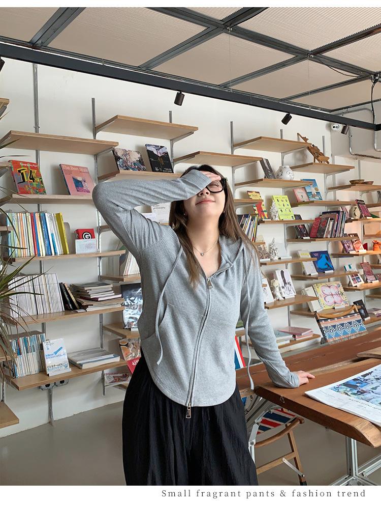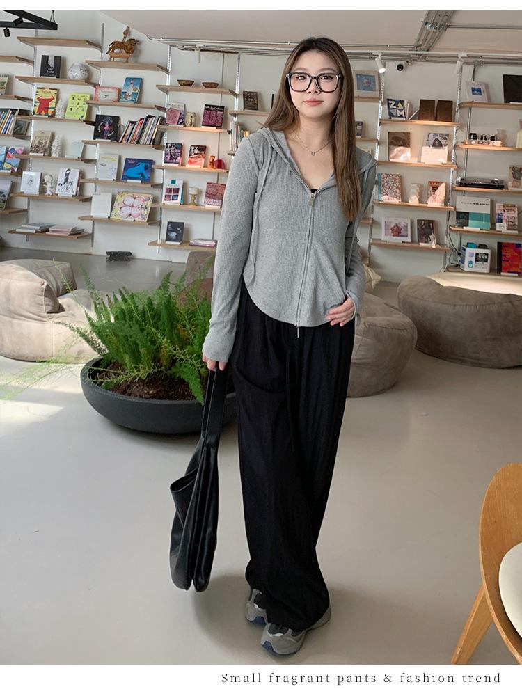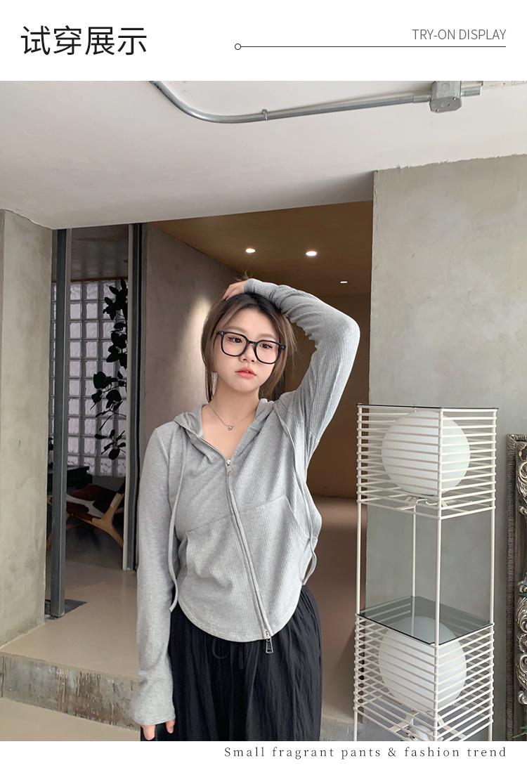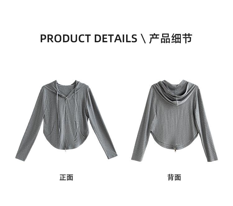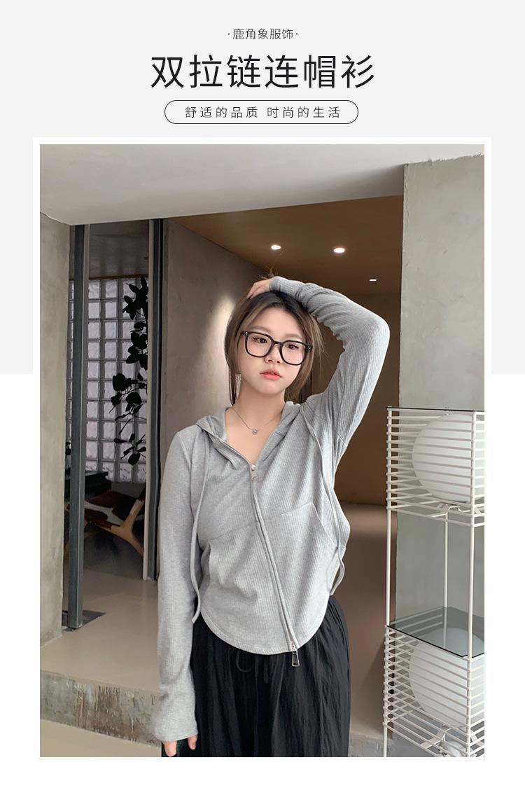 Sudadera con Capucha con Cordón y Doble Cremallera para Mujer de Talla Grande, Versátil, Casual, Ajustada, Sexy, de Manga Larga, Diseño de Cárdigan, Top