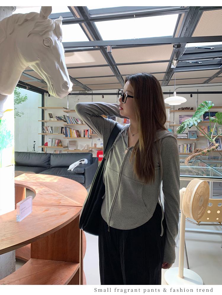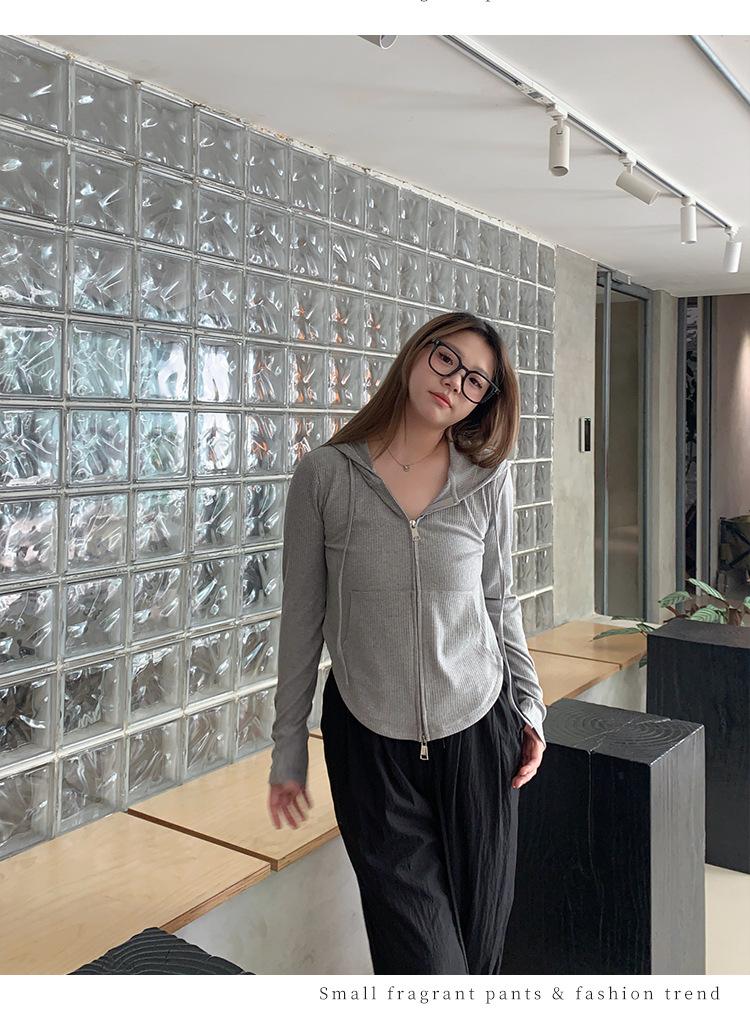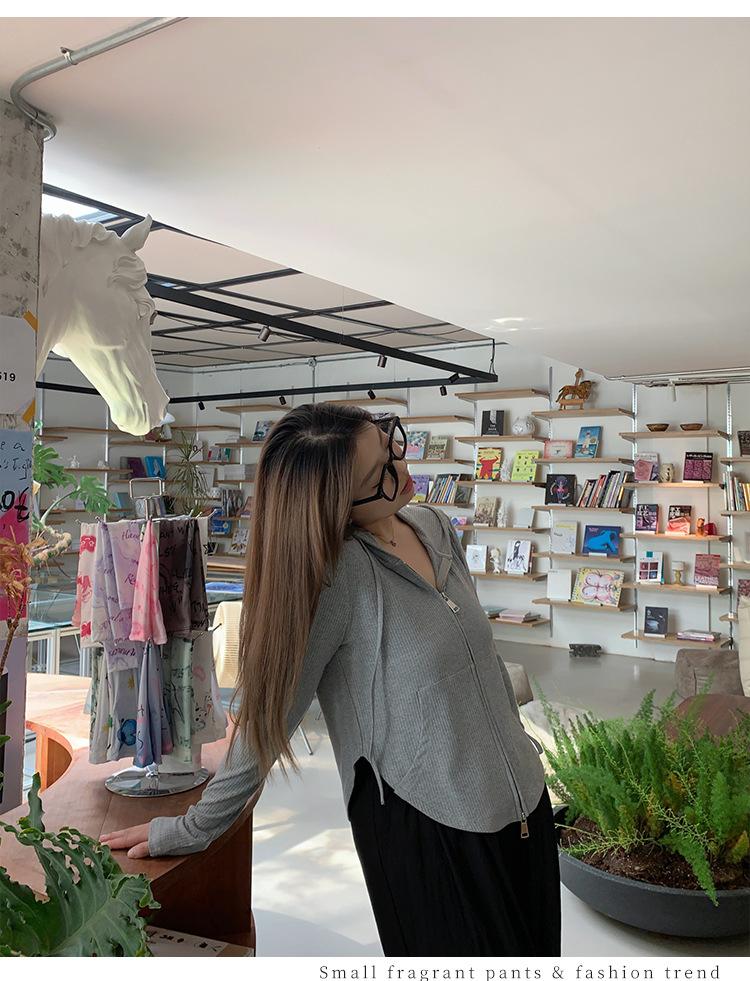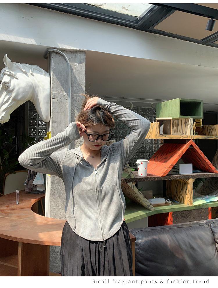 Sudadera con Capucha con Cordón y Doble Cremallera para Mujer de Talla Grande, Versátil, Casual, Ajustada, Sexy, de Manga Larga, Diseño de Cárdigan, Top