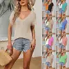 Fronterizo 2026 Amazon Temu Venta Caliente de Verano Nueva Ropa de Punto de Talla Grande para Mujer Europea y Americana de Manga Corta con Cuello en V Suelta