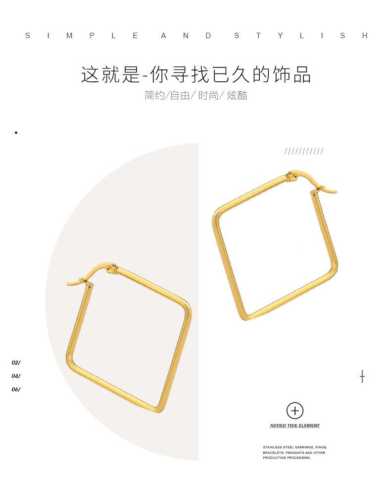 Europa y Estados Unidos moda popular aretes exagerados para mujer cuadrados cuadrados oro personalidad simple geométricos joyería