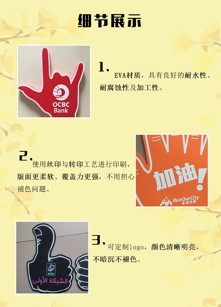 Fabricantes suministran guantes de EVA para porristas, guantes de porristas, accesorios de EVA, patrón de logotipo impreso con gestos.