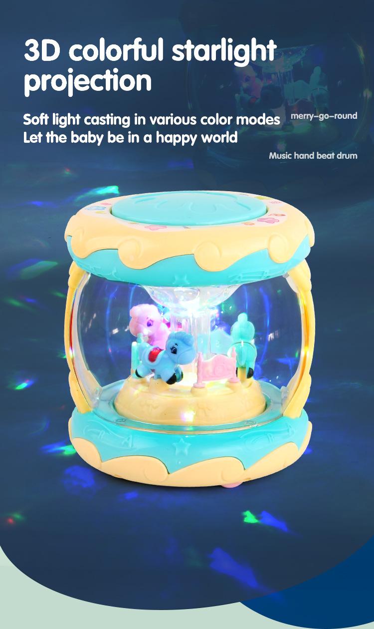 Carrusel para bebé de Amazon más vendido, tambor de mano, luz de proyección 3D, música, narración de cuentos, educación temprana, juguetes para bebé