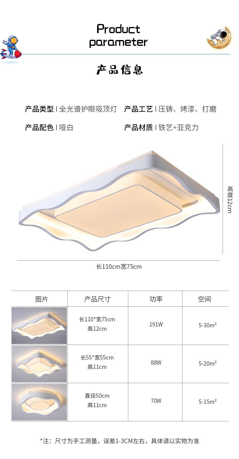 Lámpara de sala de estar, lámpara de techo, estilo nórdico minimalista, crema, lámpara de dormitorio, espectro completo, protección ocular, onda creativa, lámpara principal de pasillo
