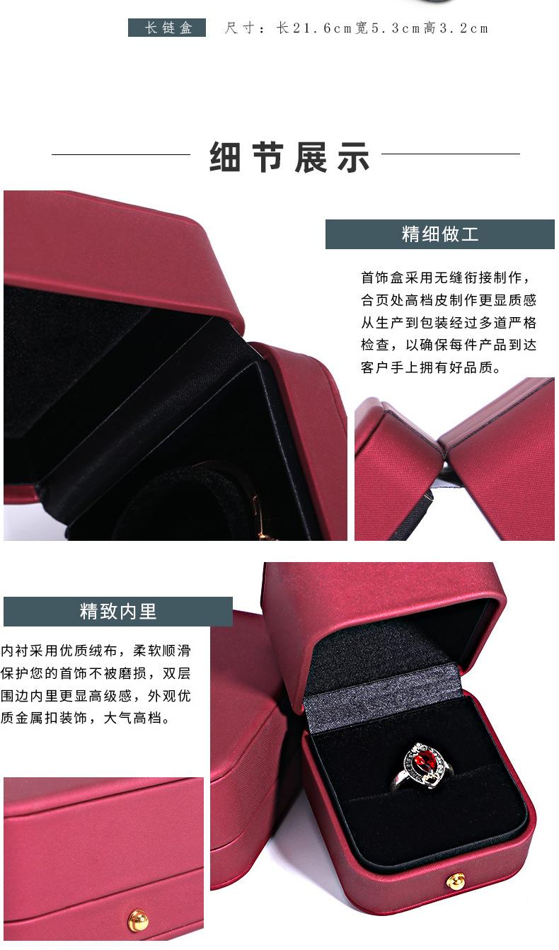 Caja de Joyería de Anillo de Alta Gama Hebilla Dorada Redondeada Caja de Joyería de Pu Caja de Embalaje para Colgante Collar Pulsera Caja de Joyería al Mayoreo
