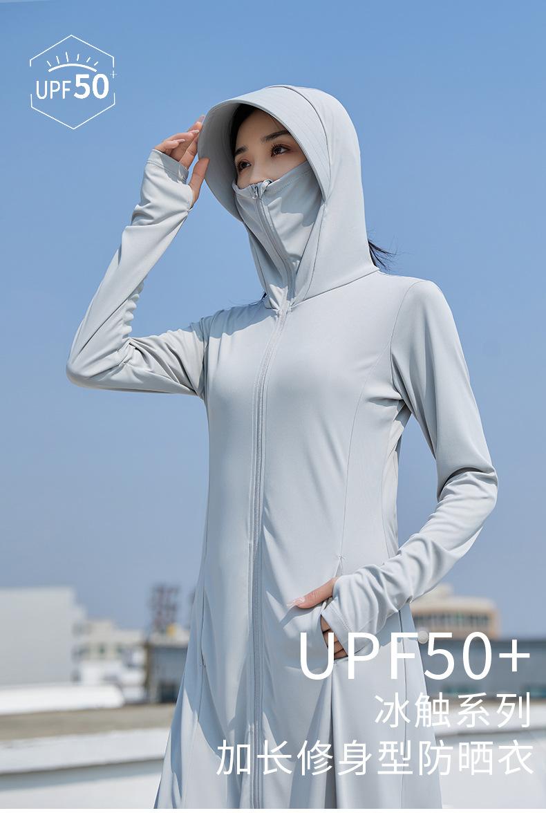 UPF50 2022 Verano Ropa Protectora Solar de Largo Medio Abrigo de Seda de Hielo para Mujer Protección Ultravioleta para Exteriores Ropa Protectora Solar Fina