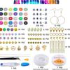 【TODO LO QUE NECESITAS】 - Una caja de aproximadamente 5500 cuentas planas de arcilla polimérica en 24 colores y 460 juegos de dijes (incluyendo cuentas de letras aleatorias, cuentas de carita sonriente, cuentas de arcilla con forma de fruta, conchas, colgantes, argollas de unión, cierres de langosta, etc.), 1 rollo de 5 m de cordón elástico y tijeras para satisfacer todas tus necesidades de fabricación de pulseras y joyería.