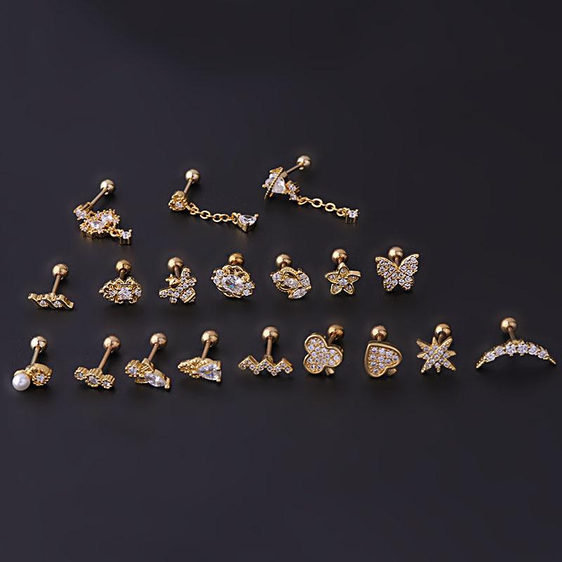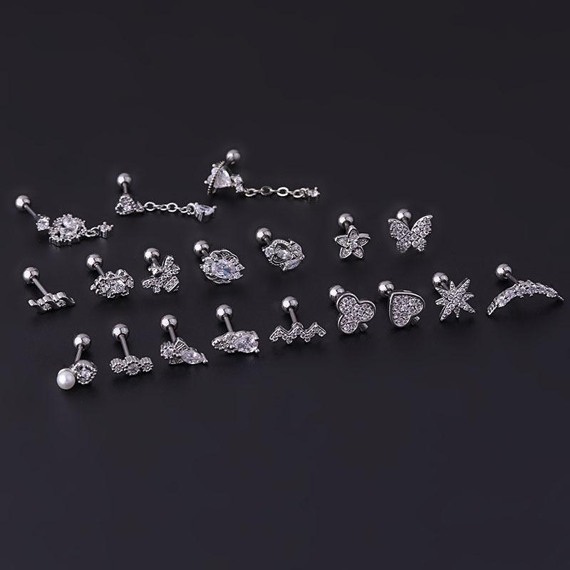 nombre del producto | Clavo para hueso de la oreja de acero inoxidable 20G con circonita, barra delgada, moda europea y americana de comercio exterior, aretes piercing, aretes de bola de rosca, único |