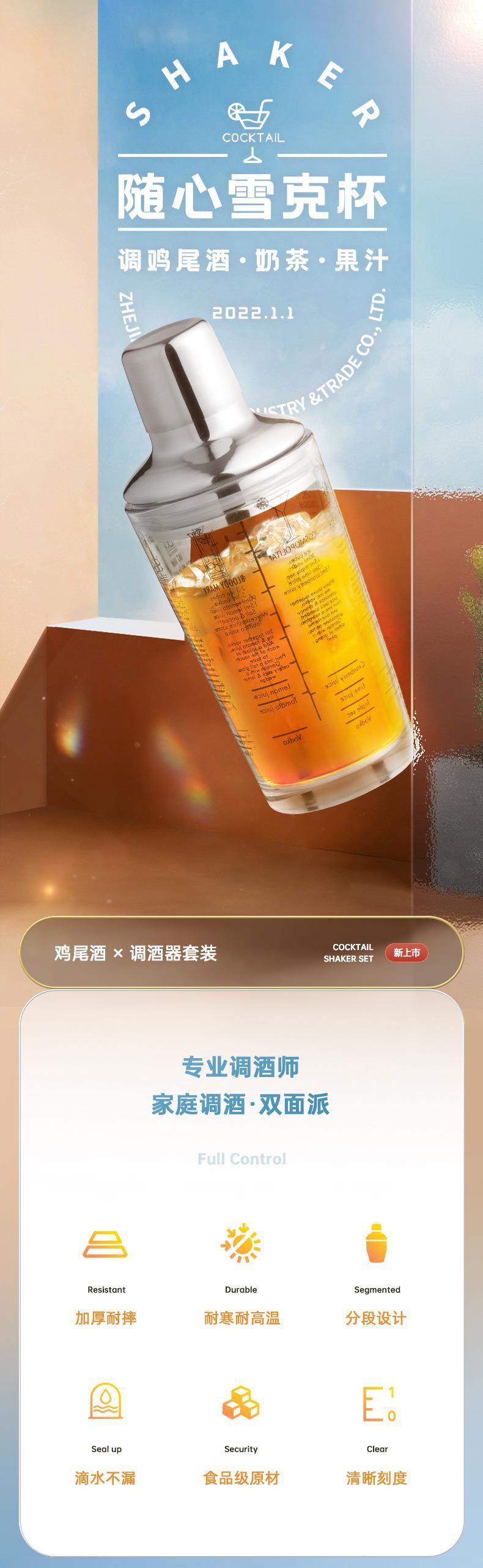 Coctelera de vidrio con escala, taza agitadora, leche, té, juego de herramientas especiales, olla agitadora de acero inoxidable, juego completo de coctelera