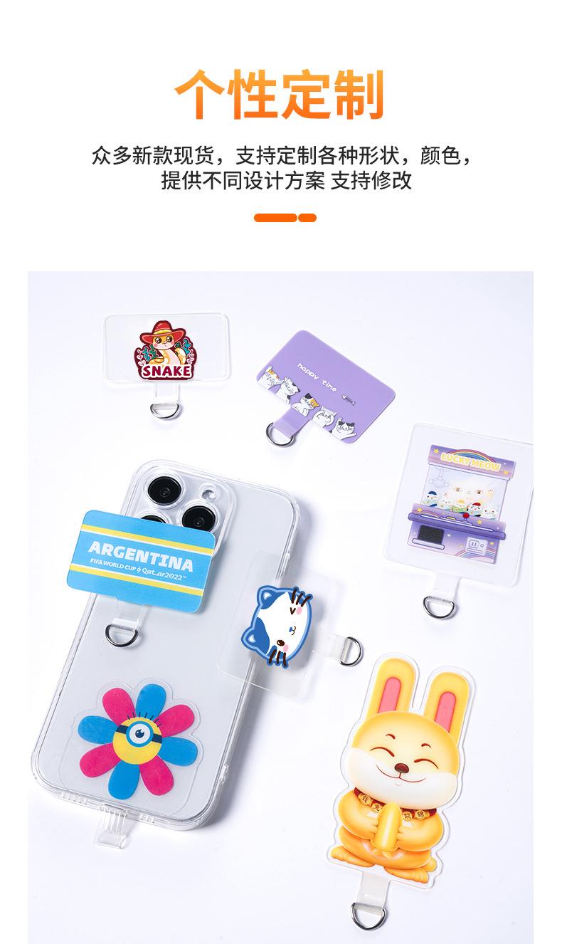 Clip para Cordón de Teléfono Móvil Junta de Moldeo por Inyección de Tpu Pieza Colgante de Tela con Forma Especial Adhesivo Trasero Pieza de Fijación de Tarjeta Cordón Personalizado
