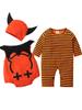 Ropa infantil transfronteriza, venta al por mayor, alas de diablo, ropa de rendimiento, ropa de Halloween para niños, traje de escalada de tres piezas para bebé, bolsa, ropa de pedos