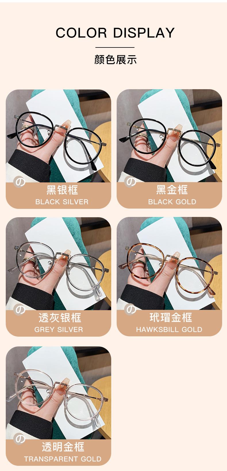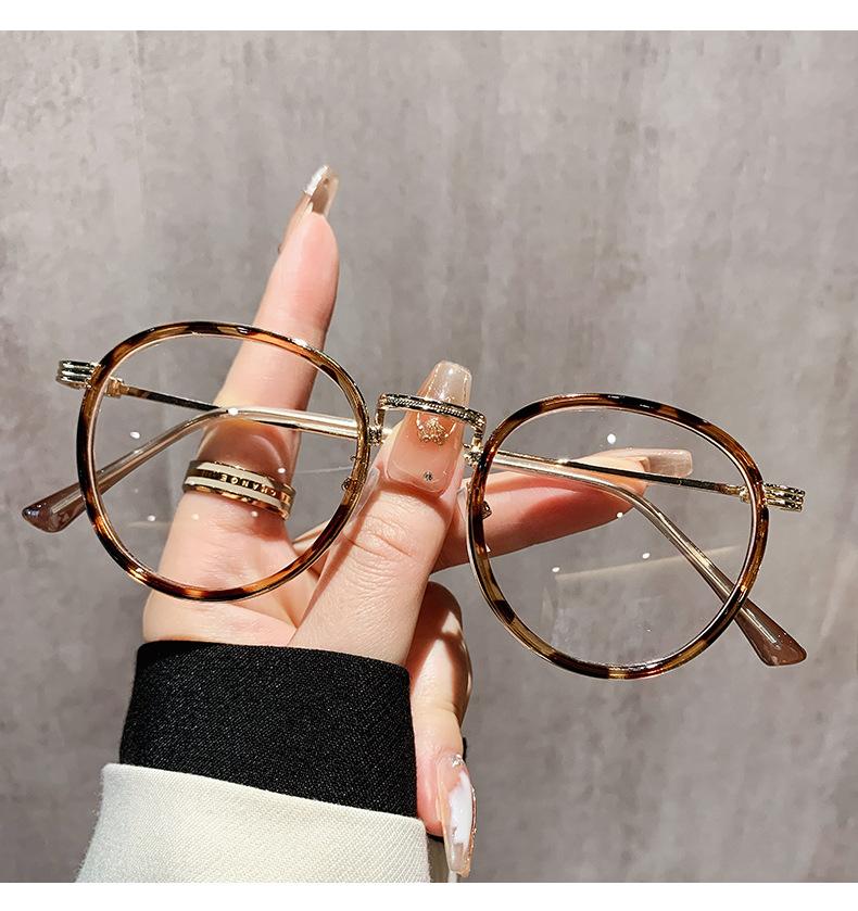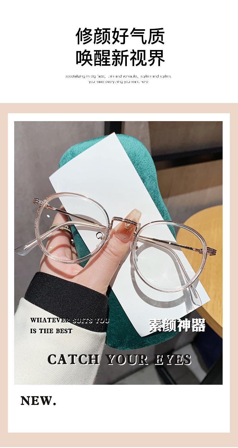 El marco de gafas para miopía para mujer se puede equipar con gafas redondas de metal de moda coreana, marco de gafas retro anti-azul.