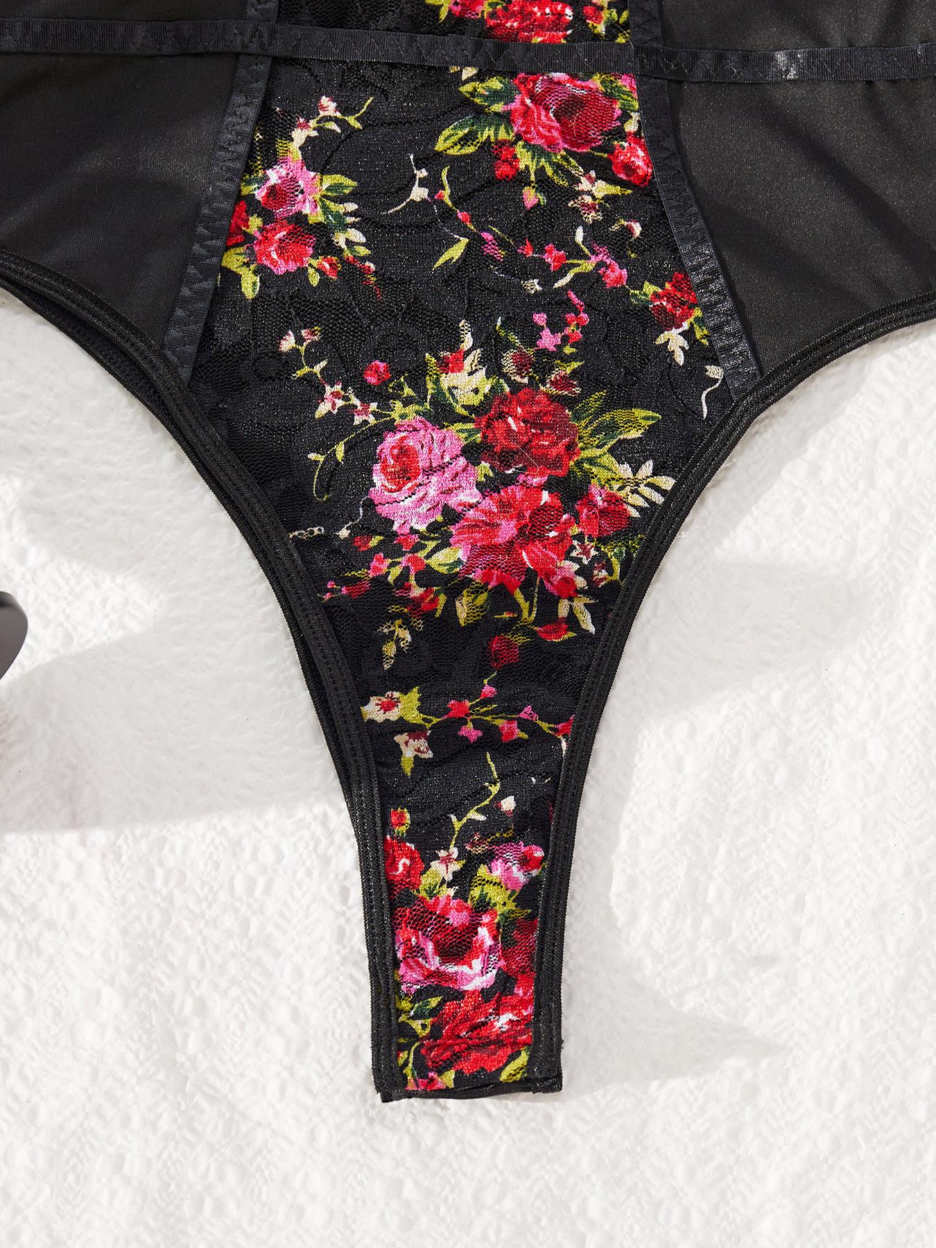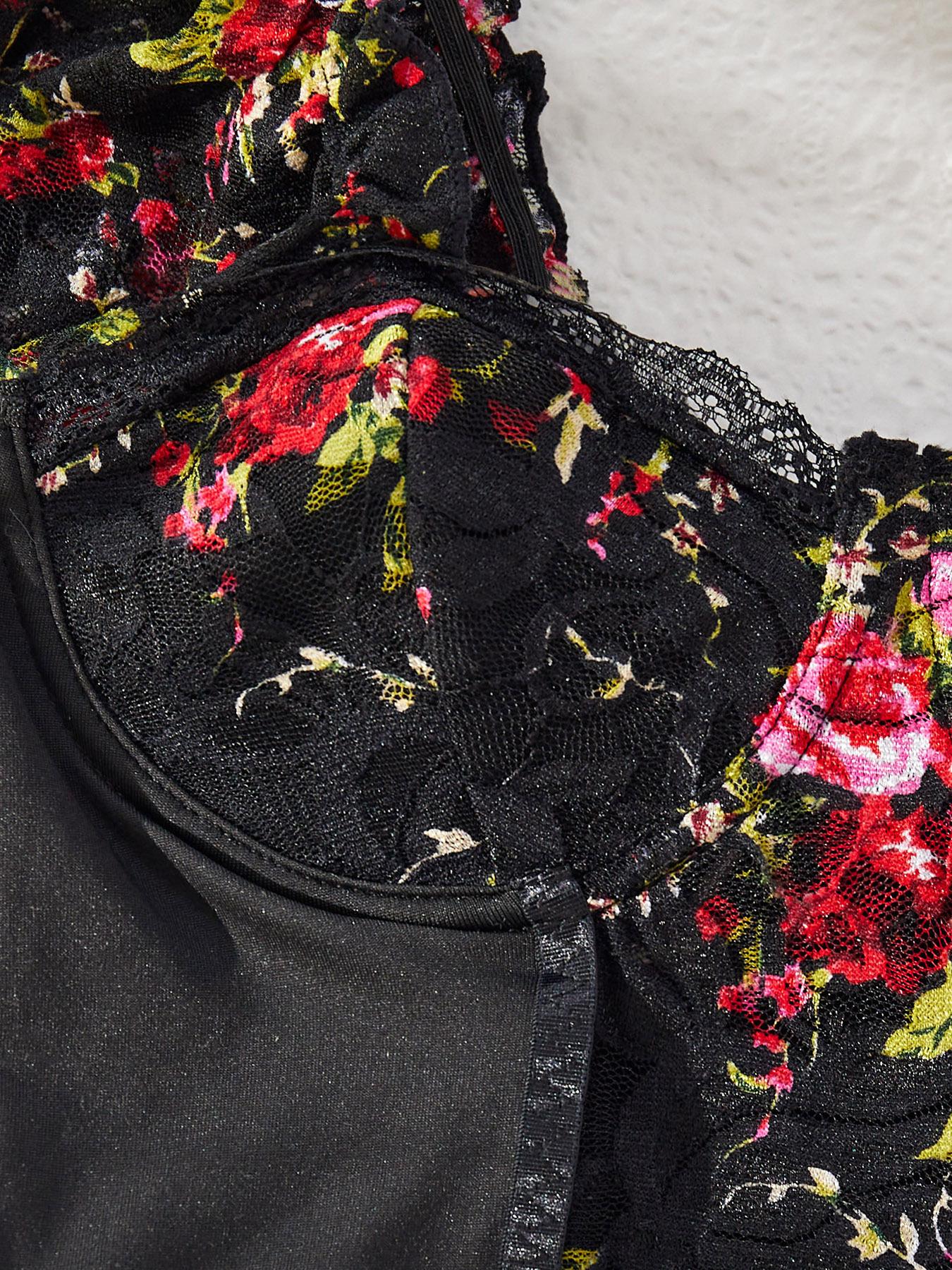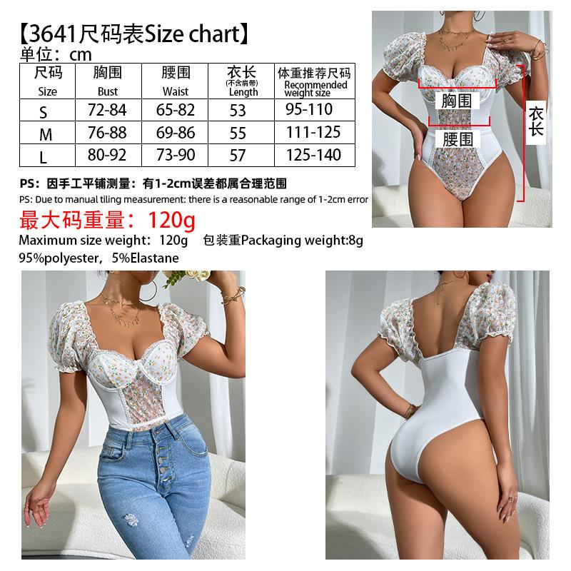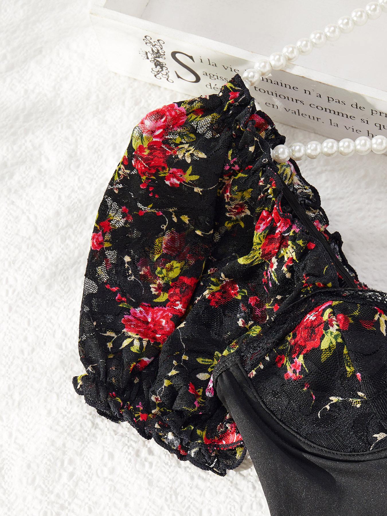Moda caliente transfronteriza nuevo mono sexy para mujer de corte ajustado con encaje estampado ahuecado con perspectiva de manga abullonada