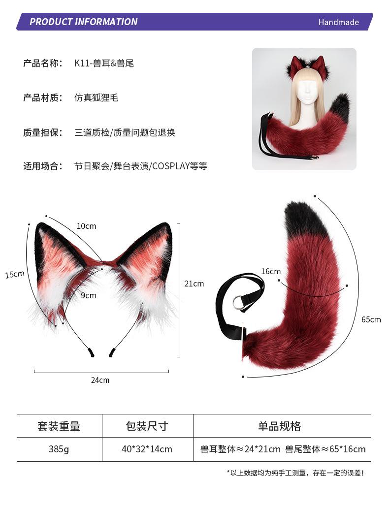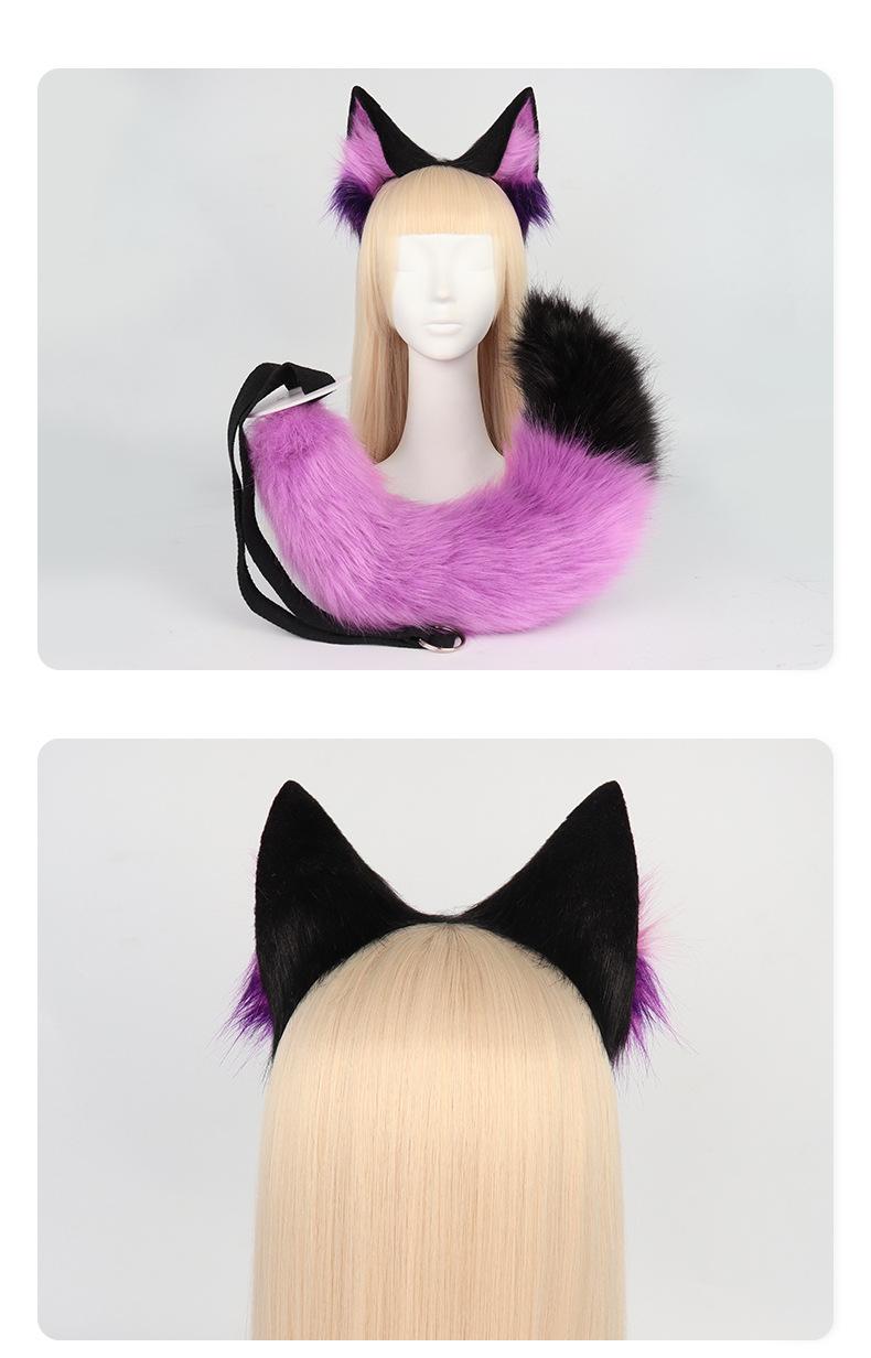 Diadema con orejas de gato simuladas hechas a mano, accesorios de cola de zorro, conjunto de orejas y cola de animal bidimensional, collar y horquilla al por mayor