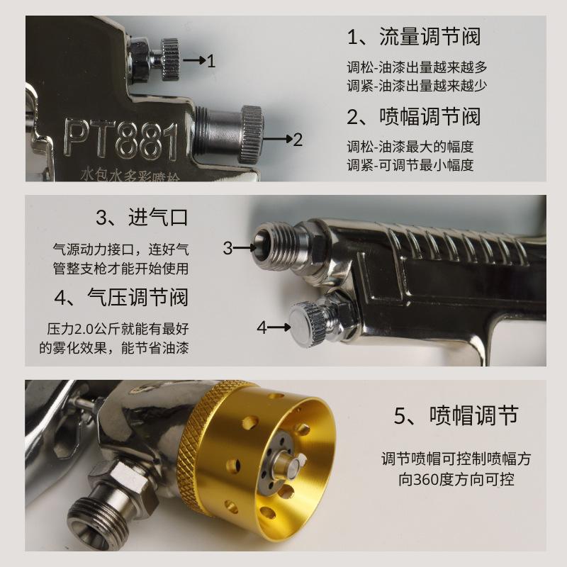 Pistola de pulverización neumática pistola de pulverización manual colorida calibre de pintura 5.0 pintura pintura pintura fábrica pistola de pulverización de alta atomización