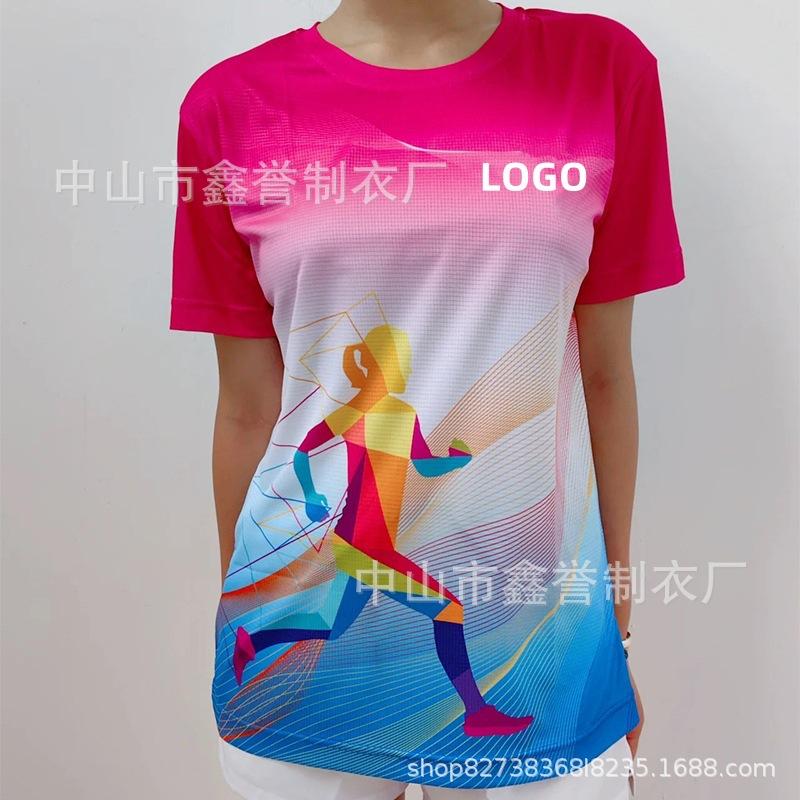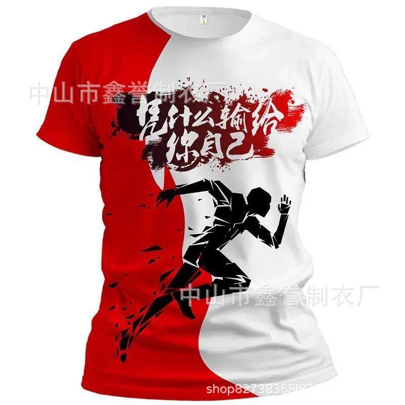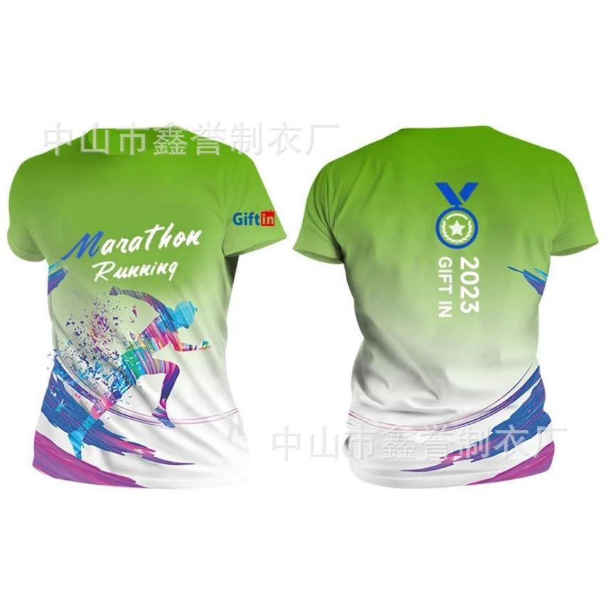 Camiseta personalizada de sublimación con impresión completa y secado rápido, para maratón, fitness, running, deportes, manga corta, cuello redondo cultural con logotipo impreso.