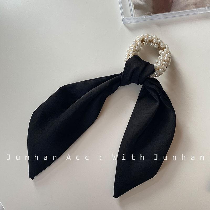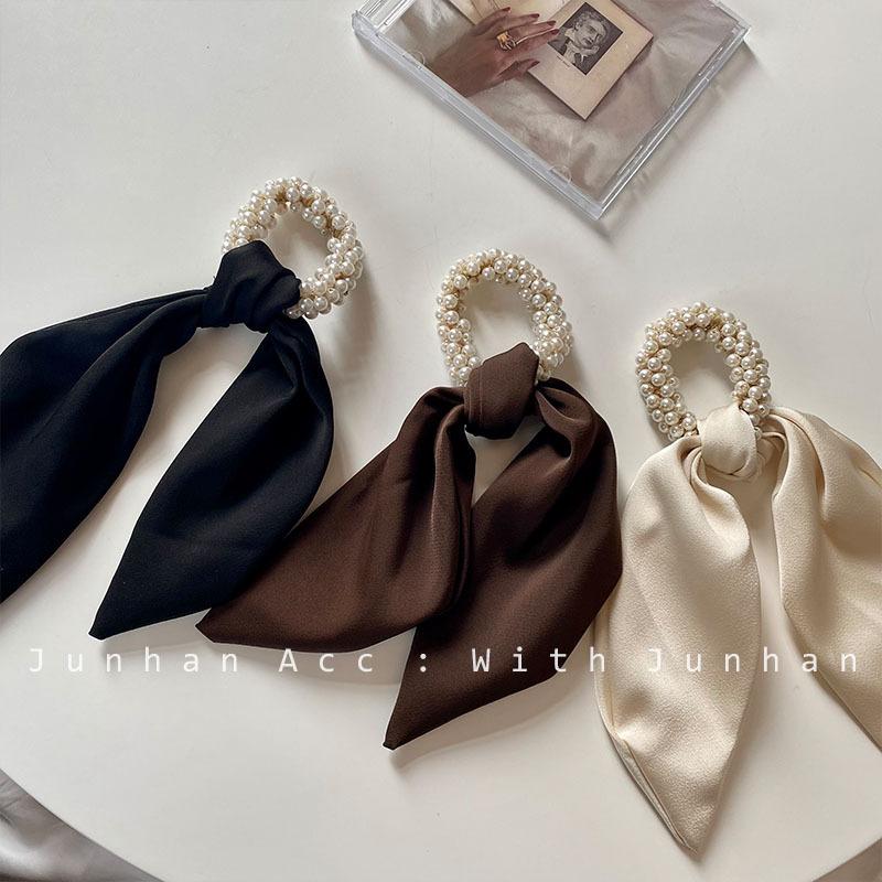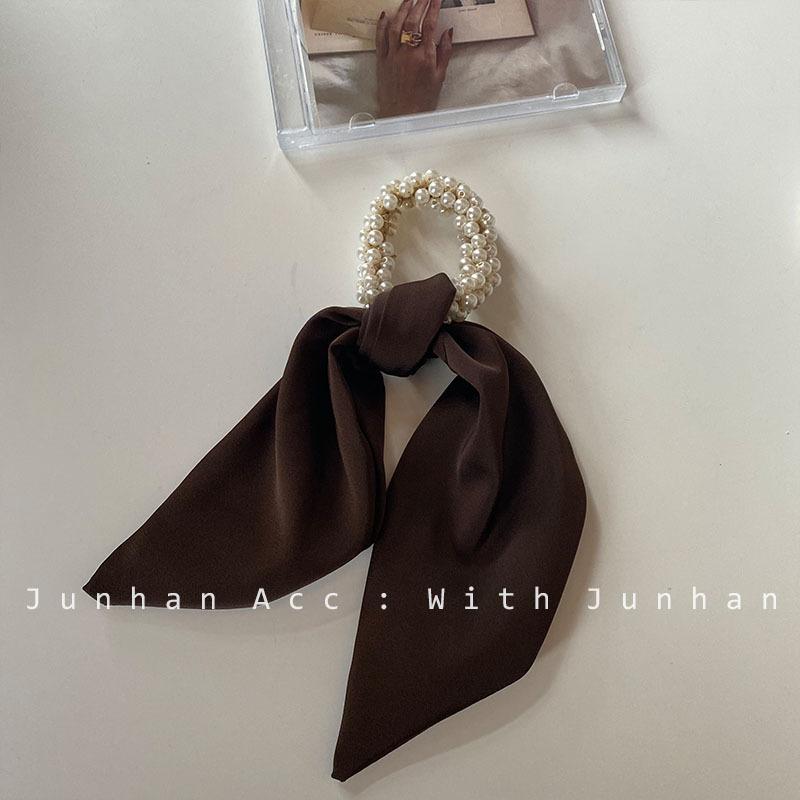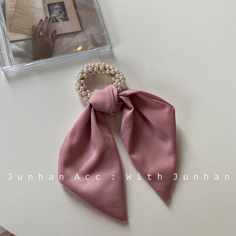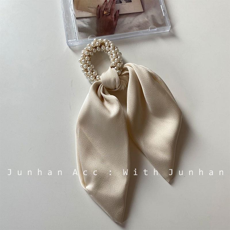 Primavera y Verano Estilo Coreano ins Color Satén Perla Banda para el Cabello Cinta Femenina Elegante Dulce Banda para el Cabello Cola de Caballo Cuerda para el Cabello Accesorios para el Cabello