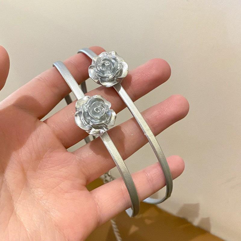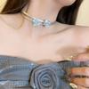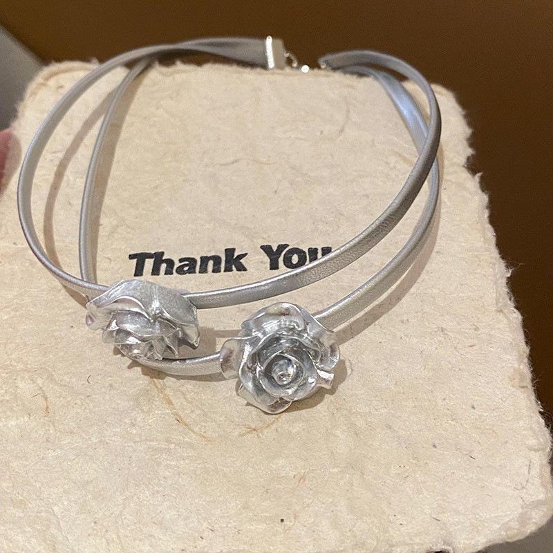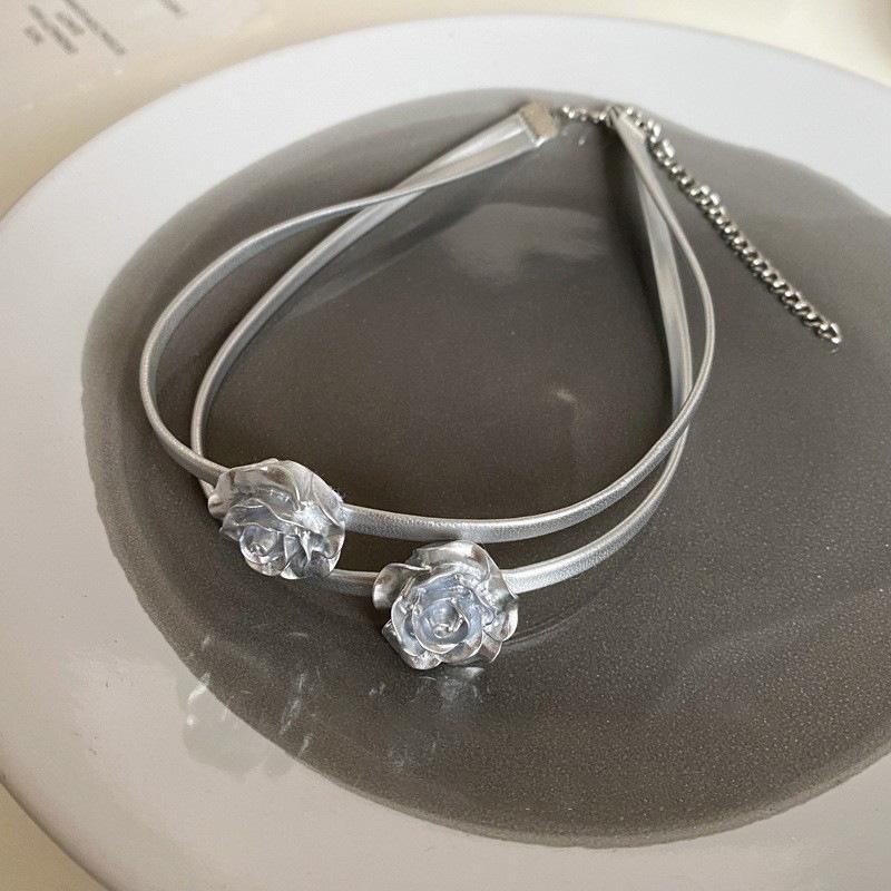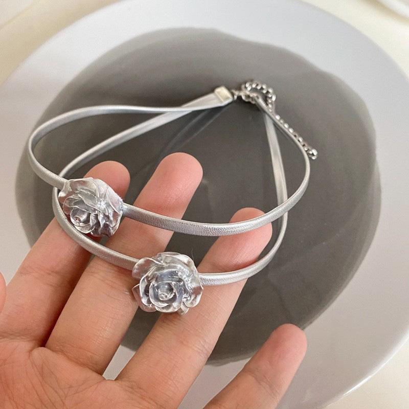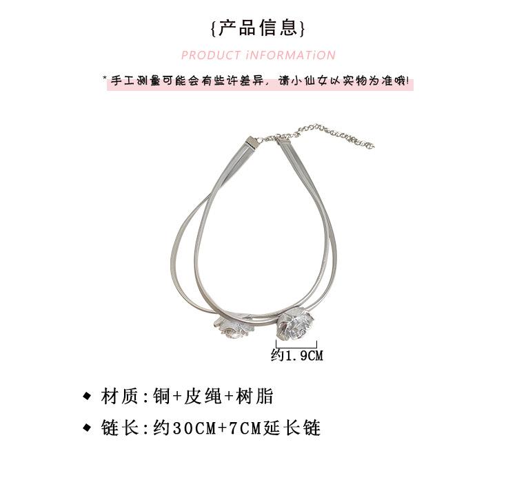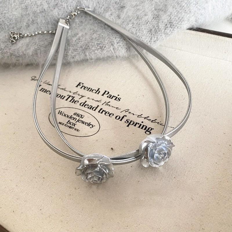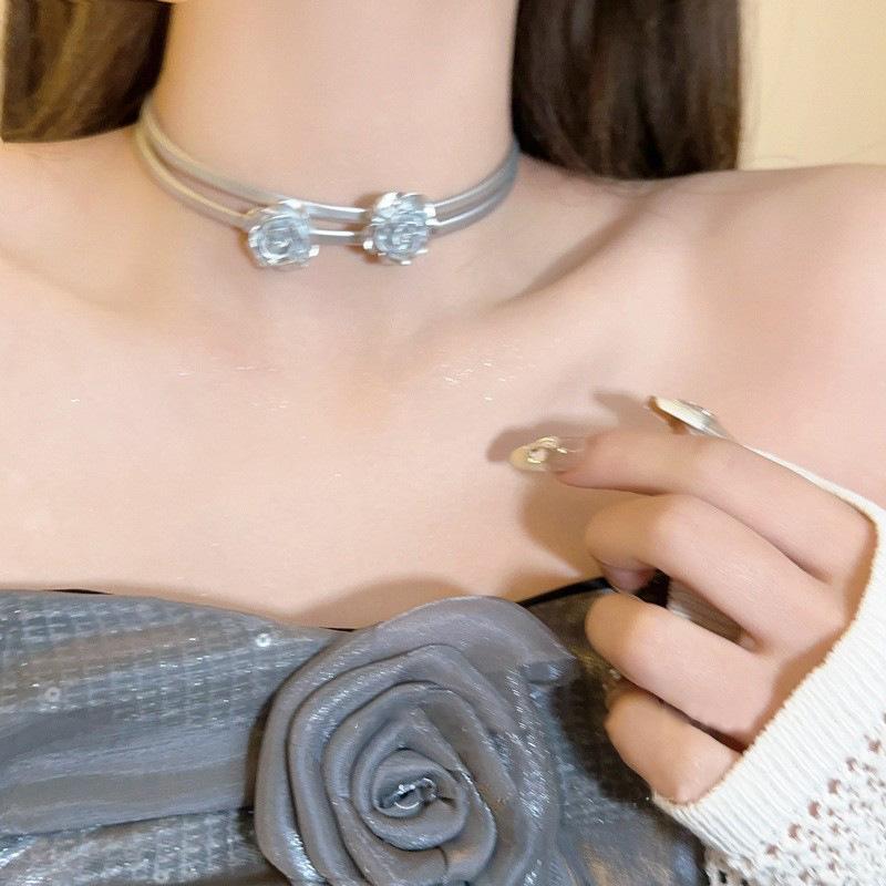 Collar gargantilla de rosa de doble capa plateado para mujer Diseño de nicho Lujuria pura Estilo sexy Moda versátil Cadena para clavícula