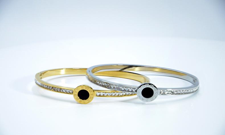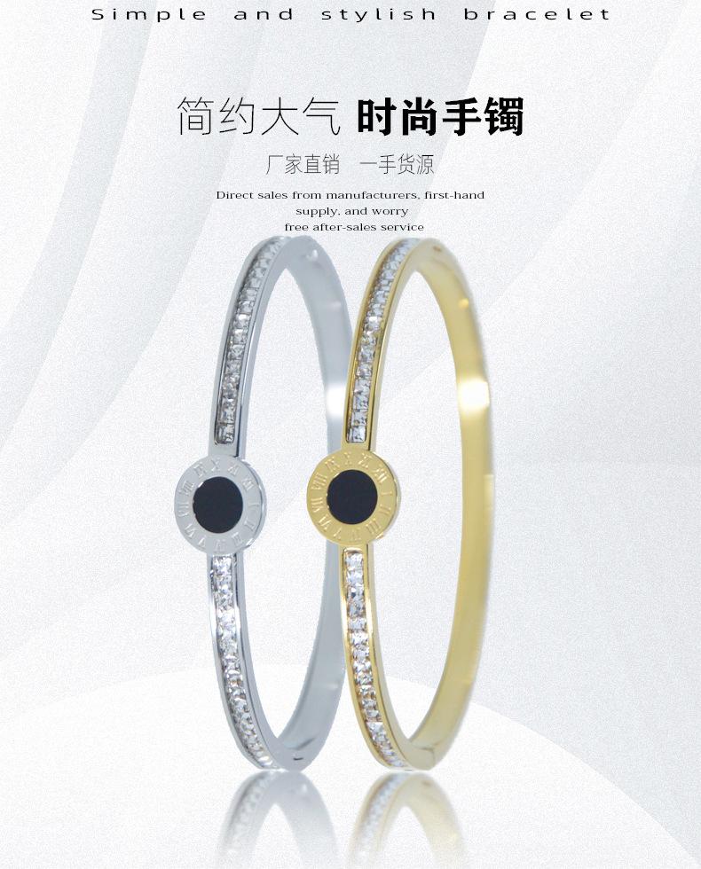Pulsera Popular Transfronteriza de Acero de Titanio con Diamantes Romanos Digitales para Mujer, Diseño de Hebilla, Nicho de Alta Gama, Moda Versátil, Accesorios de Mano