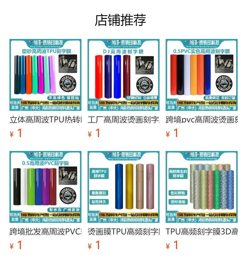 Hongcai Rollo Pequeño Venta al por Mayor Impresión Multicolor Película de Transferencia de Calor 0.5 Espesor TPU de Alta Frecuencia Material de Película para Letras Película para Estampado en Caliente