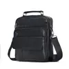 Bolso de Hombro para Hombre de Cuero Genuino Estilo Nuevo, Bolso Cruzado Vertical Casual, Bolso Multifuncional de Piel de Vaca de Primera Capa, Estilo Clásico Negro