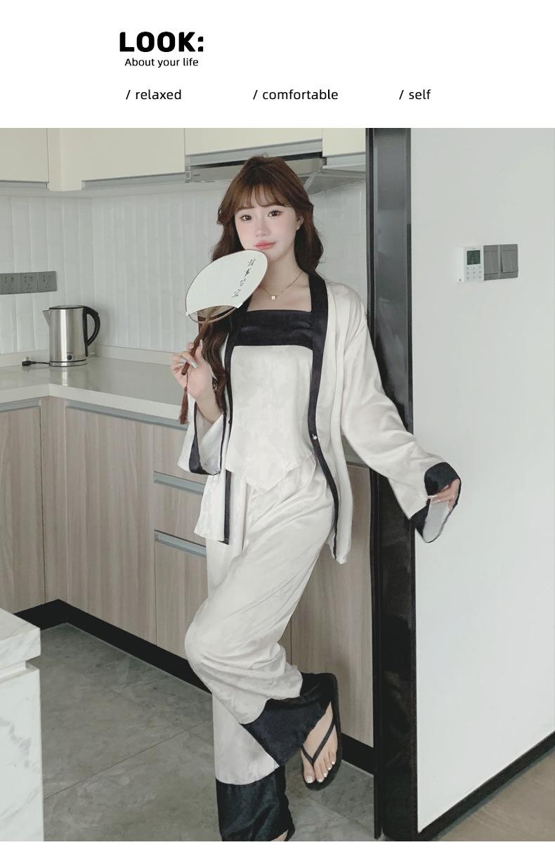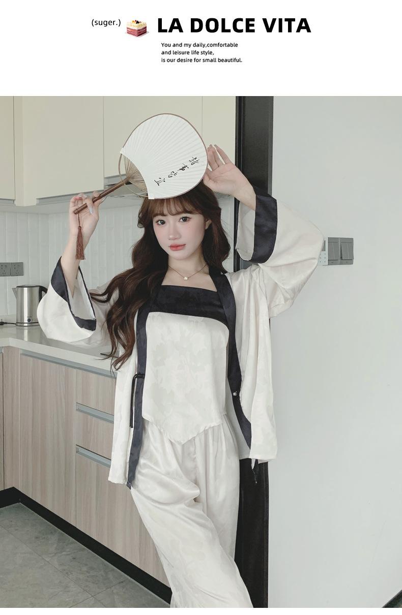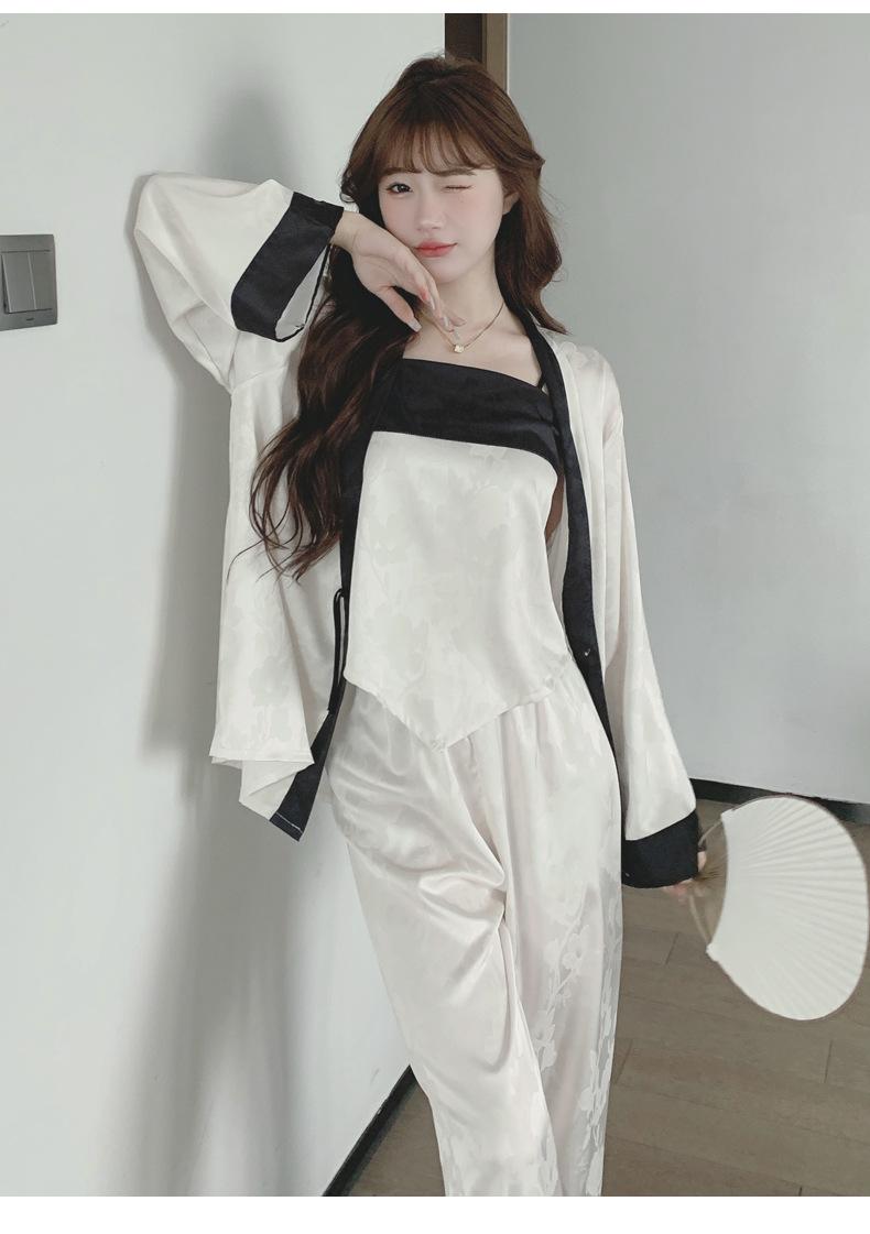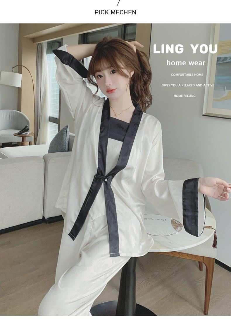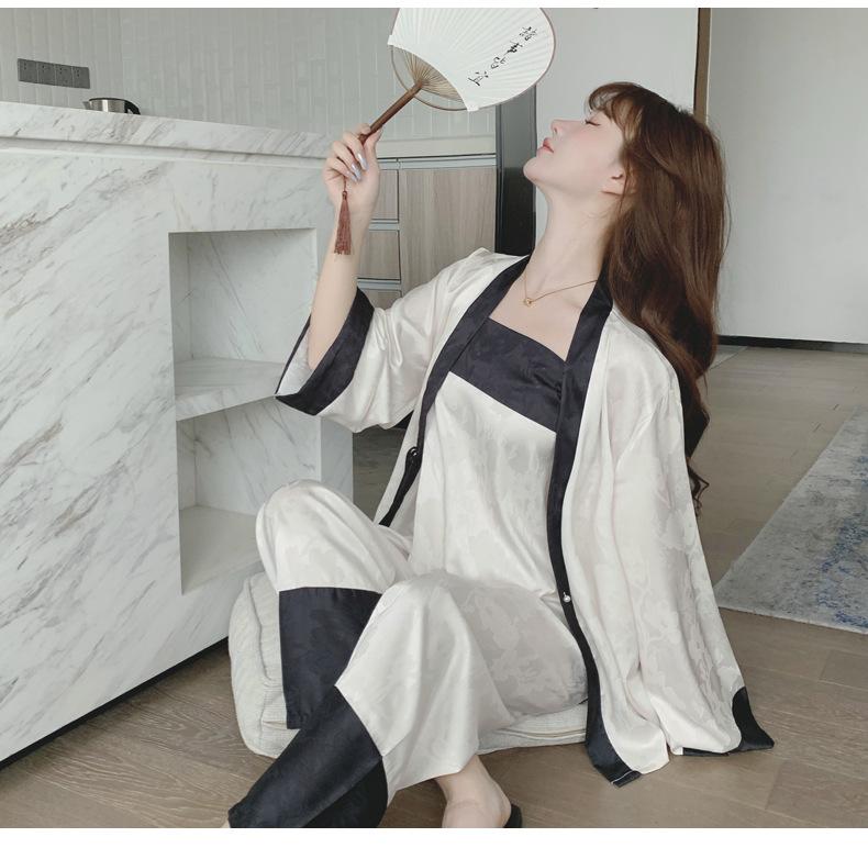 Pijama chino de primavera y otoño, conjunto de pijama de tres piezas de seda de hielo de estilo nacional para mujer, ropa de hogar para exteriores de alta calidad