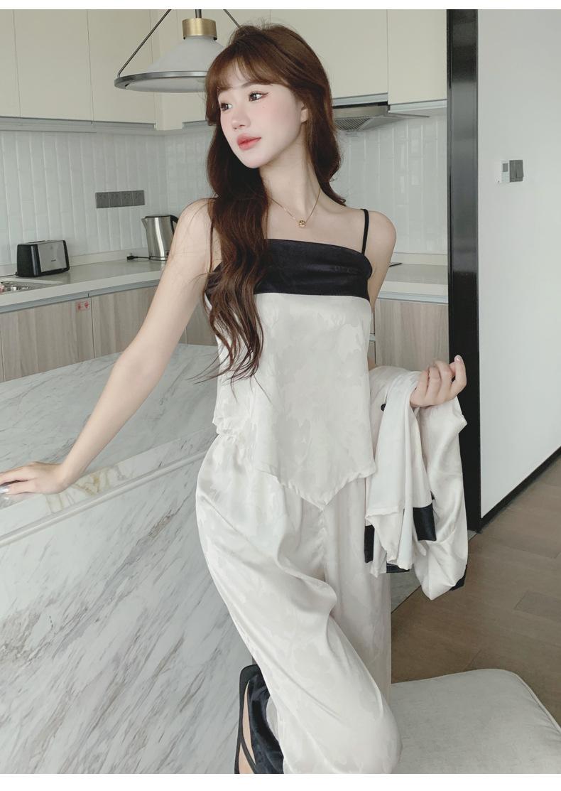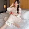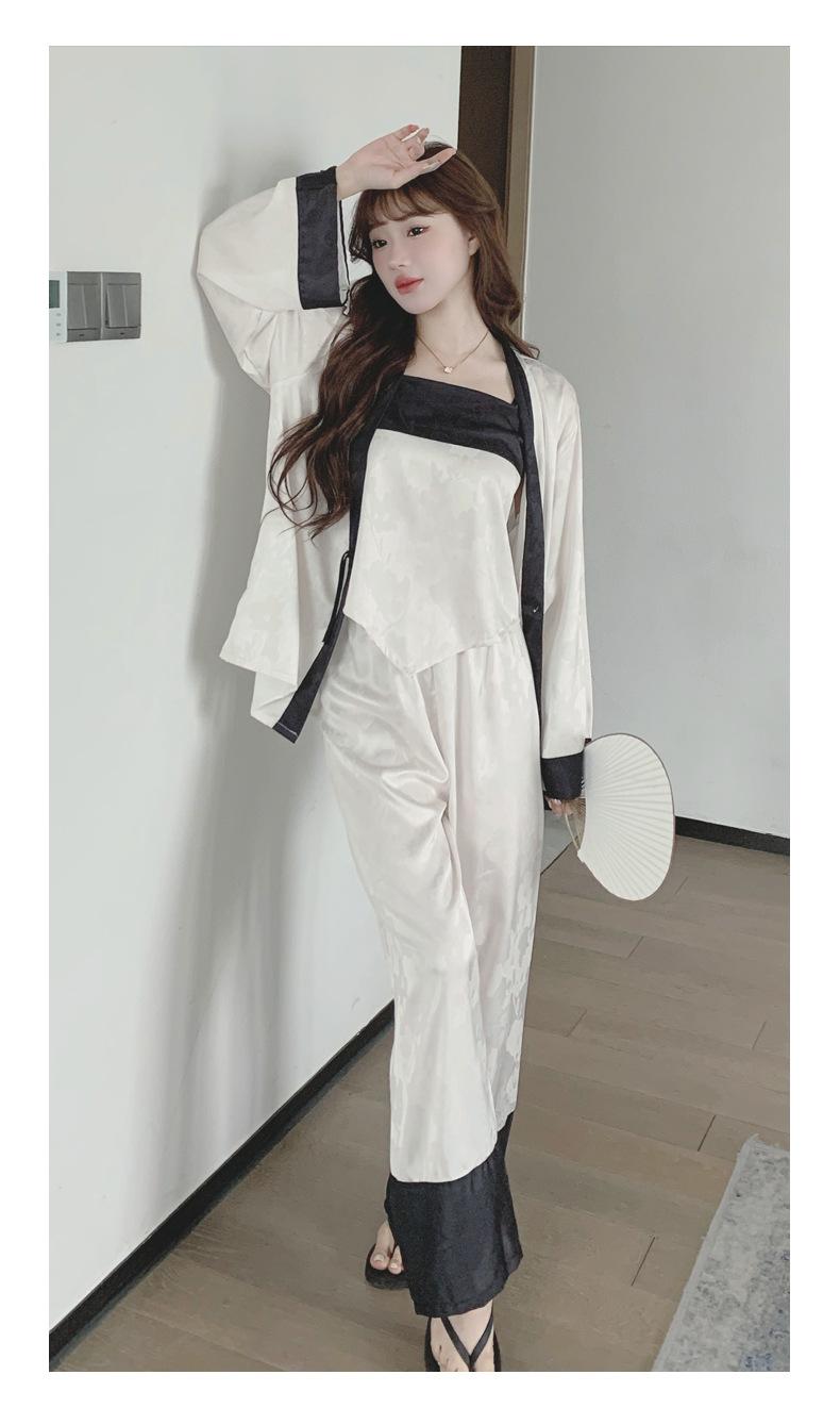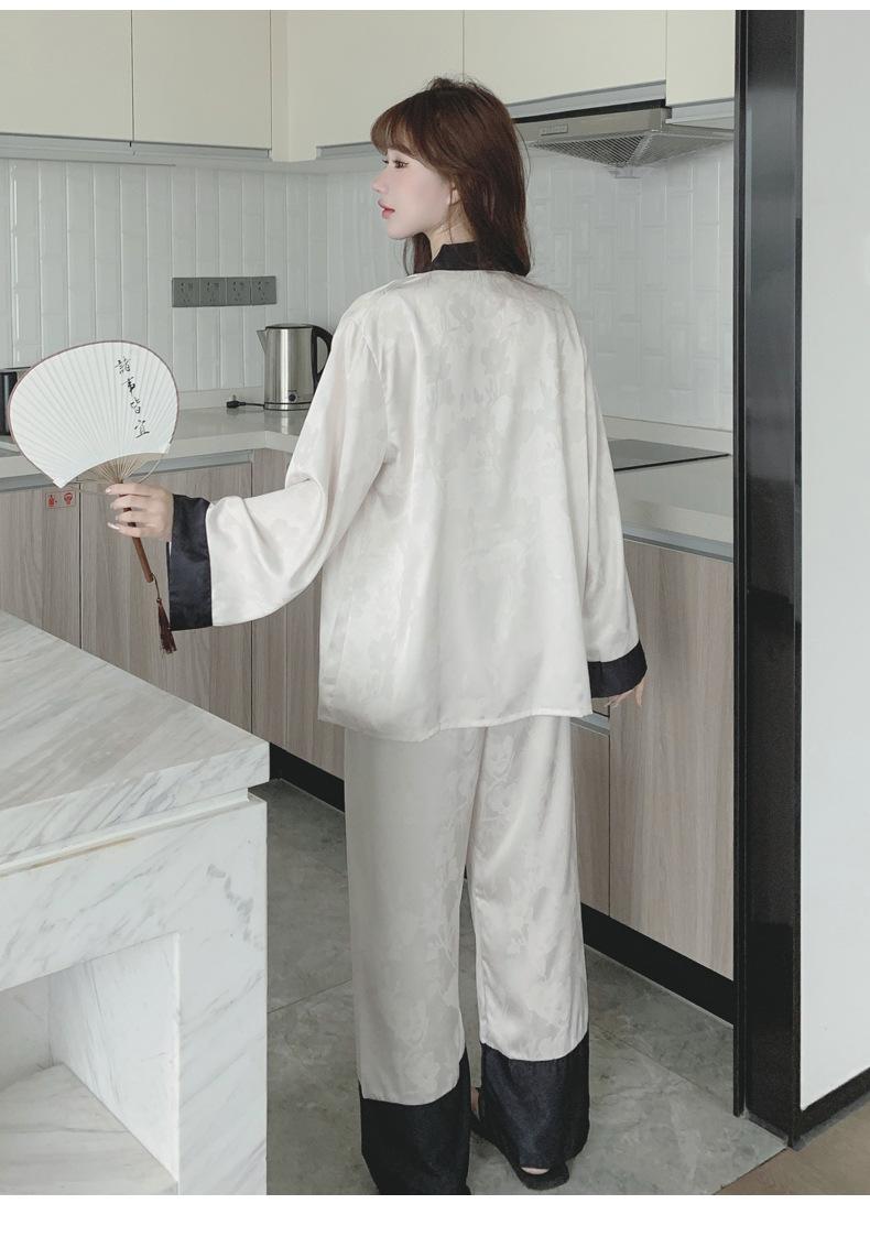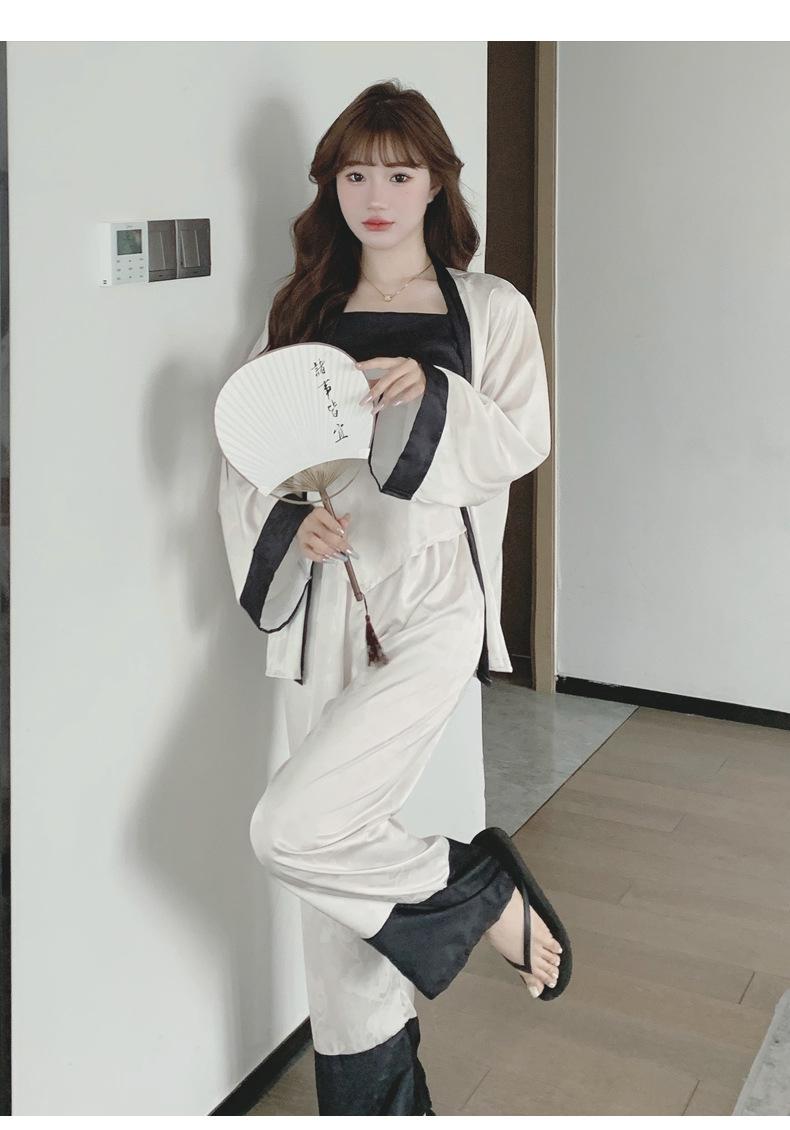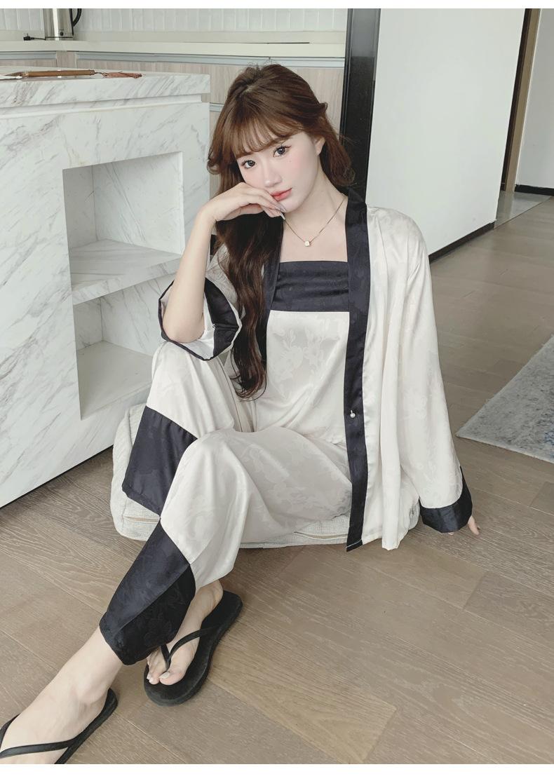 Pijama chino de primavera y otoño, conjunto de pijama de tres piezas de seda de hielo de estilo nacional para mujer, ropa de hogar para exteriores de alta calidad