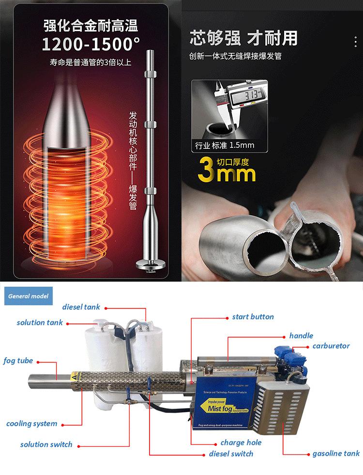 Mejor efecto de pulverización: El sistema de refrigeración por agua independiente de doble tubo protege el medicamento contra pérdidas, garantiza la fluidez del medicamento y le ofrece una buena protección. Ahorro de medicamento: Gracias a la refrigeración por agua, no presenta problemas de fallas por altas temperaturas, no necesita limpiar el tubo interior y ofrece una buena atomización. Con una dosis baja de medicamento, se puede reducir a la mitad de la dosis original, lo que permite obtener buenos resultados con menos medicamento, ahorrando medicamentos y preocupaciones.