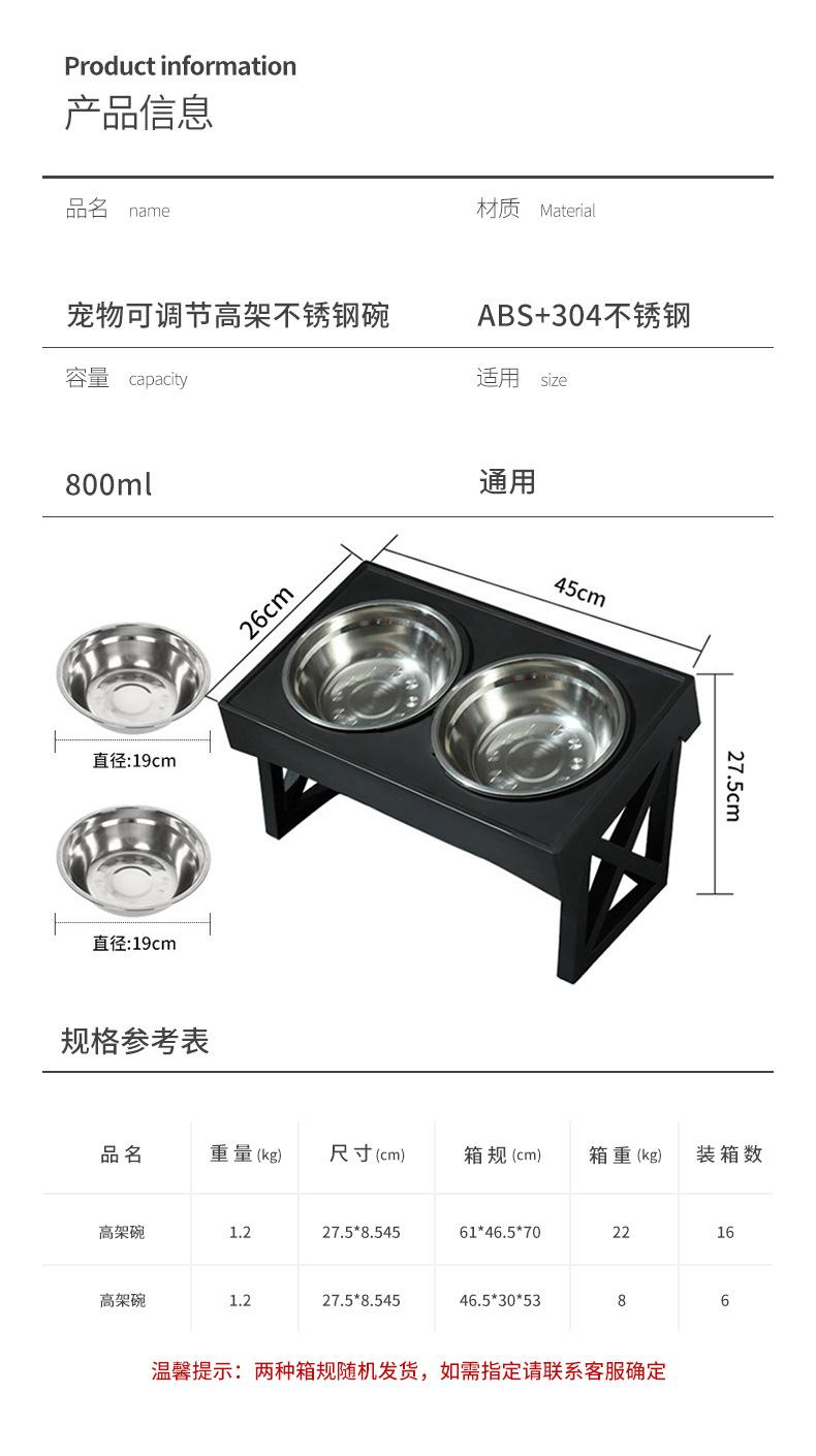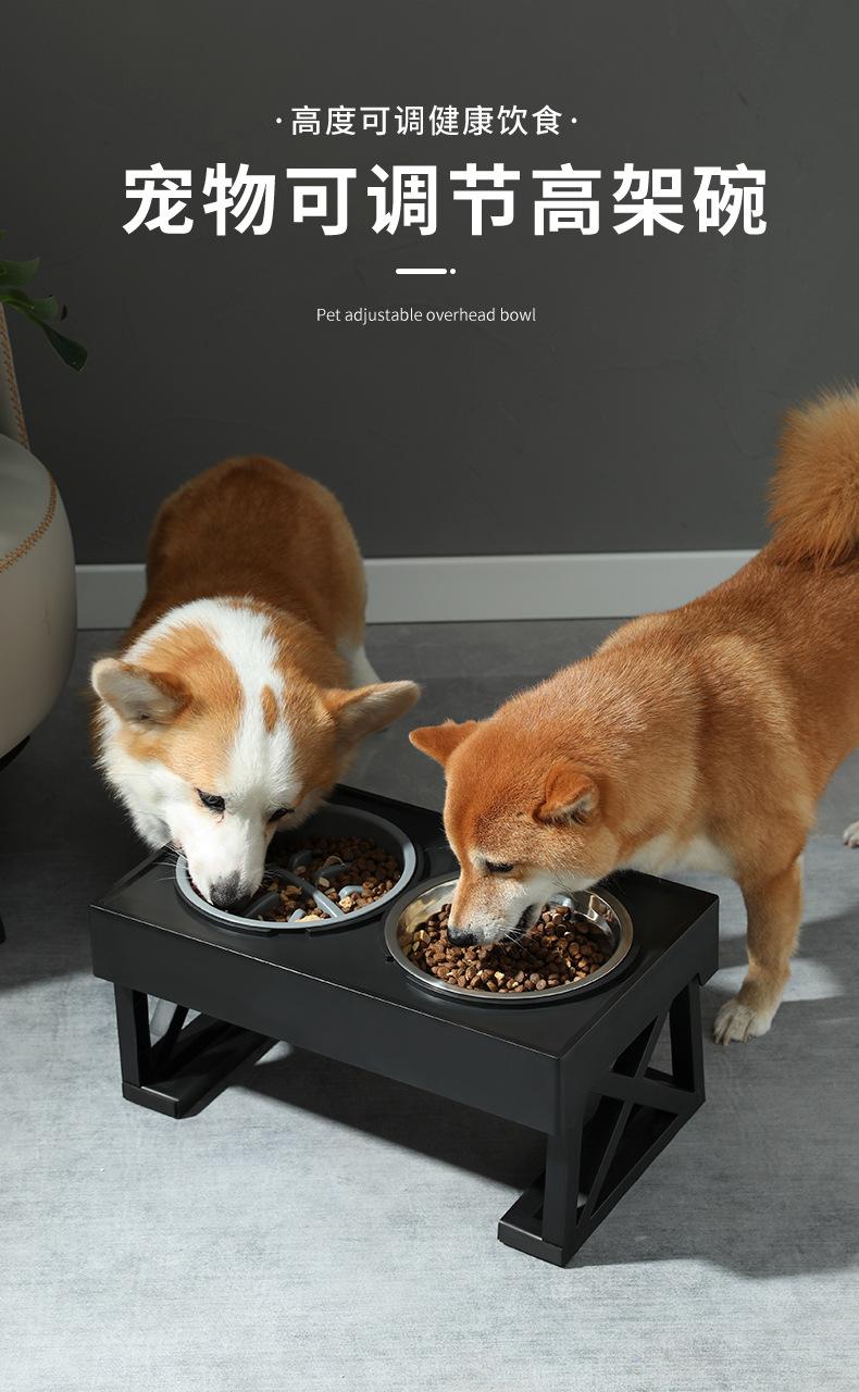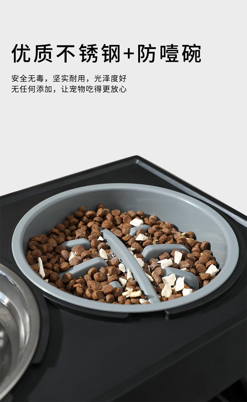 Stainless steel double bowl, Stainless steel bowl + slow food bowl, Pet elevated bowl gray, New stainless stee...