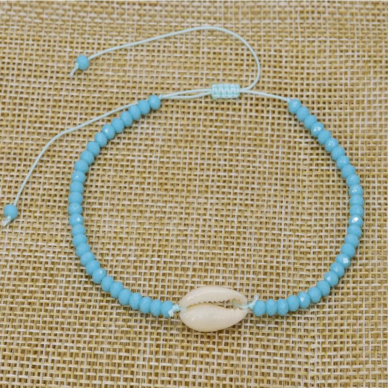 Pulsera simple de conchas con cuentas, pulsera versátil de playa oceánica, pulsera tejida a mano para niña