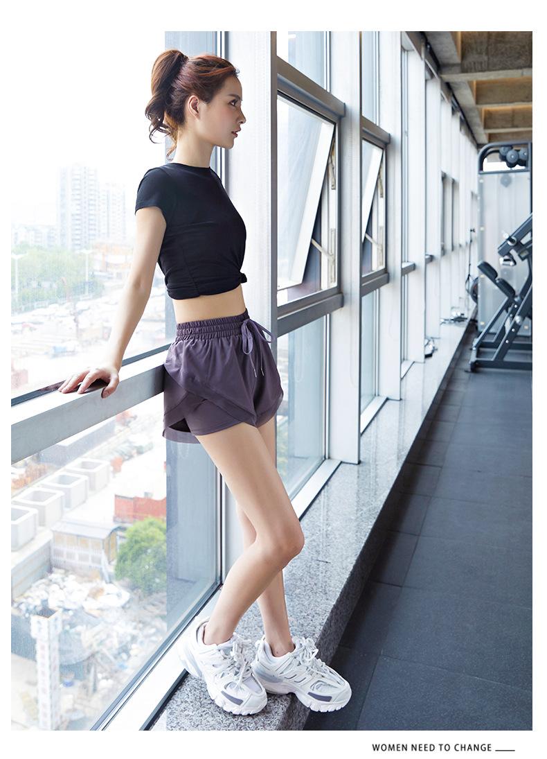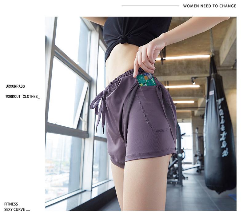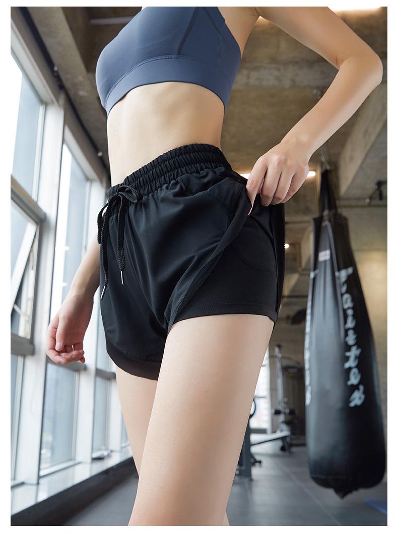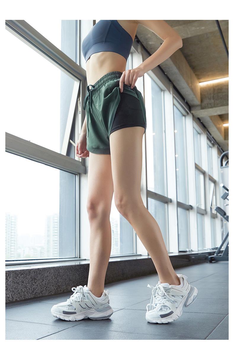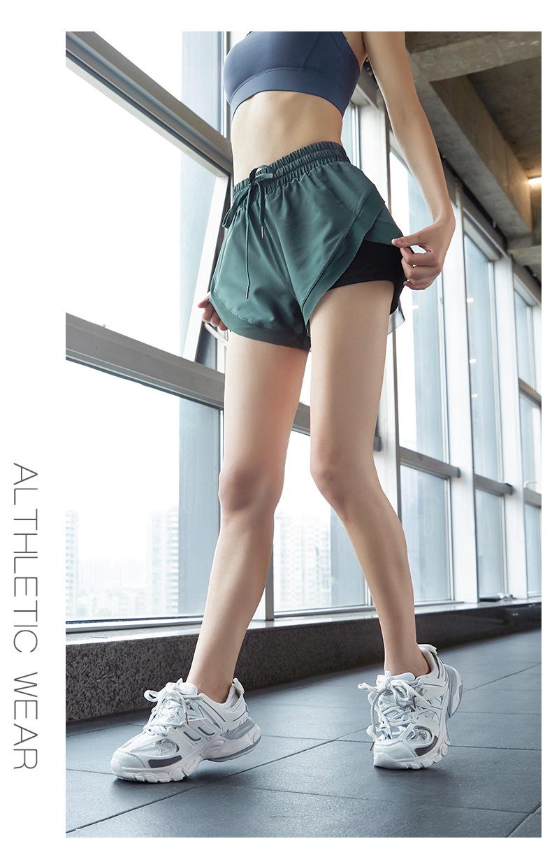Nuevos pantalones cortos de yoga de doble capa para mujer, de estilo europeo y americano, anti-caminar, de secado rápido, transpirables, para correr, deportes, fitness, verano.