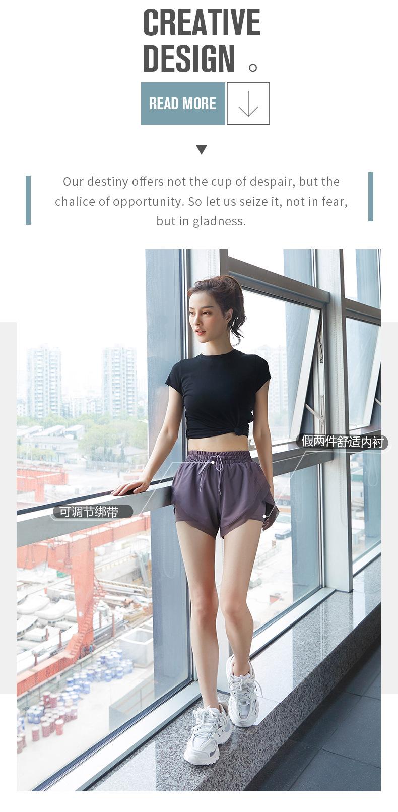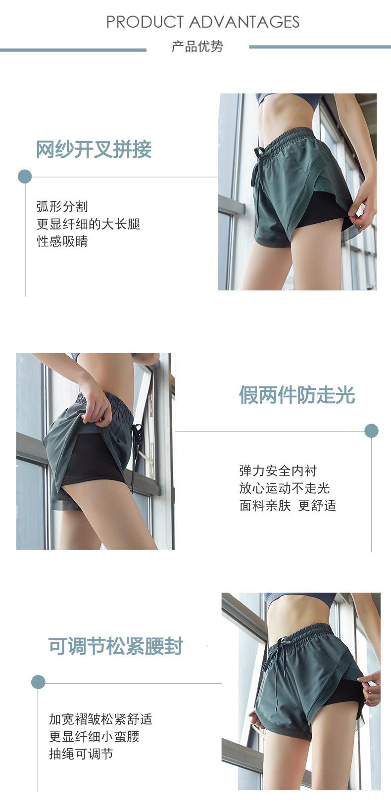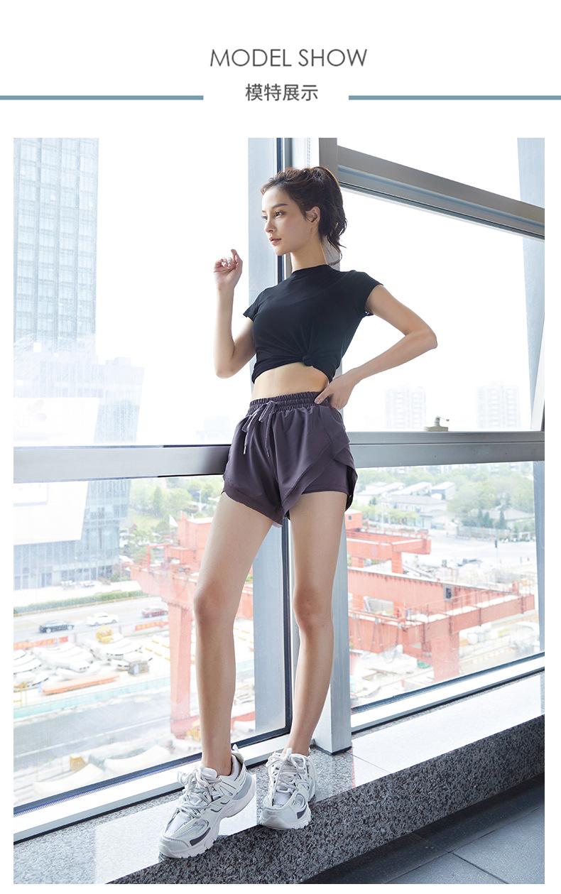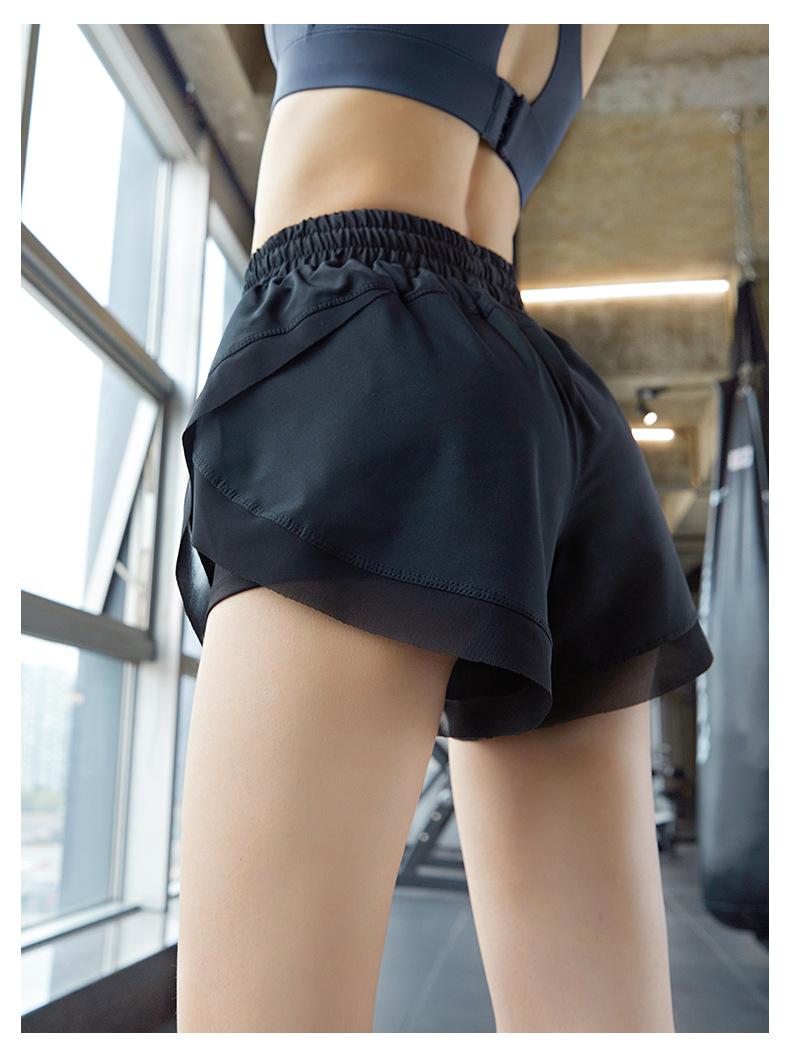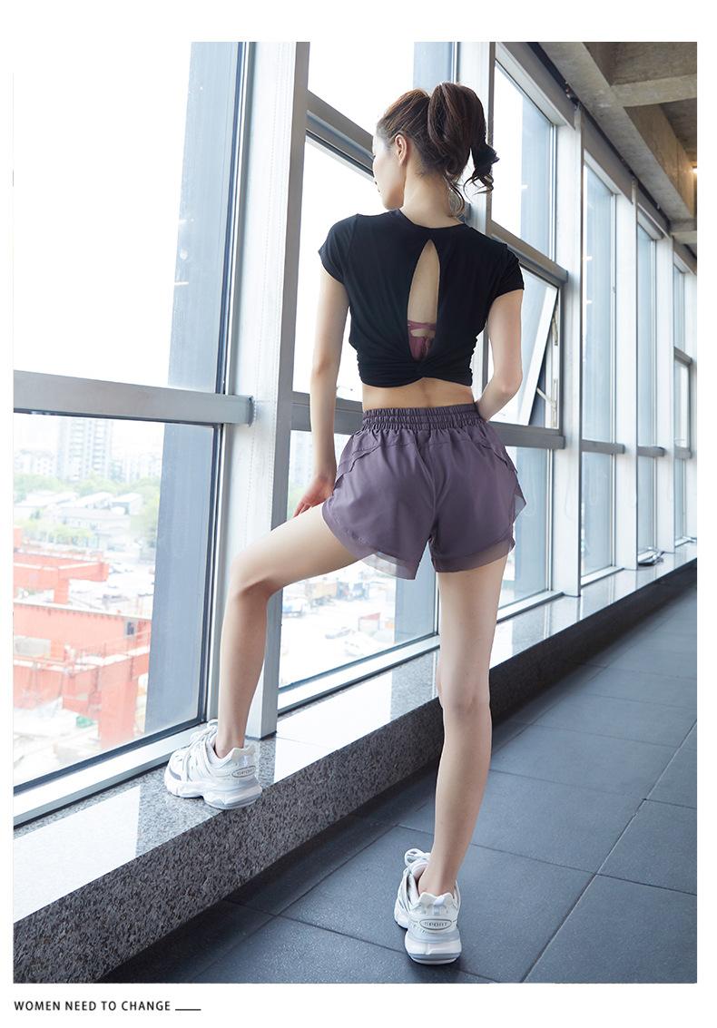 Nuevos pantalones cortos de yoga de doble capa para mujer, de estilo europeo y americano, anti-caminar, de secado rápido, transpirables, para correr, deportes, fitness, verano.
