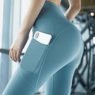 Leggings deportivos de bolsillo transfronterizos para mujer, pantalones de yoga elásticos de cintura alta nude, para correr, de secado rápido, con efecto melocotón en la cadera, para fitness
