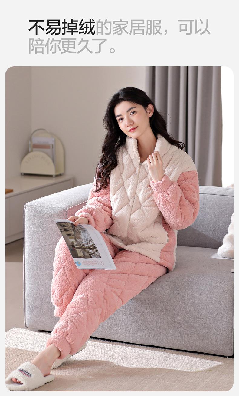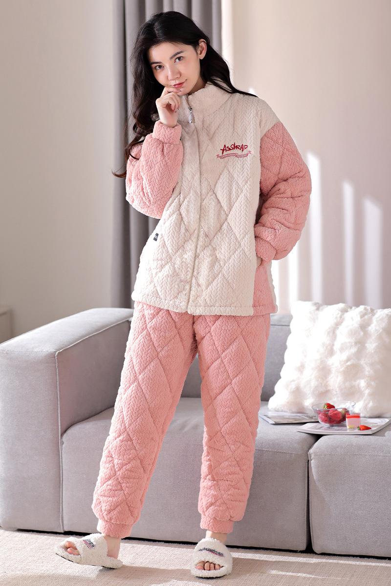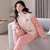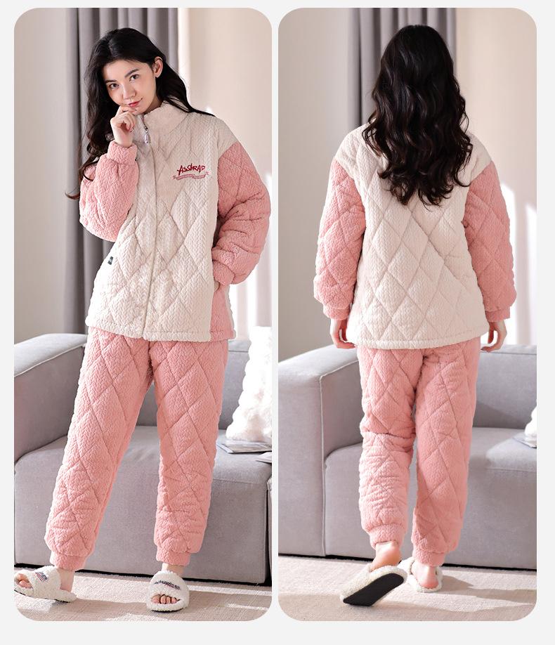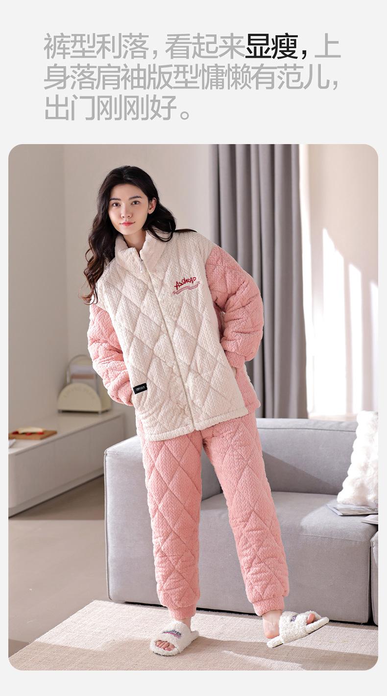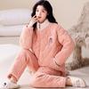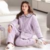 Pijama de invierno para mujer, cárdigan de tres capas acolchado de terciopelo de leche, cálido y grueso, traje informal para exteriores para el hogar