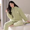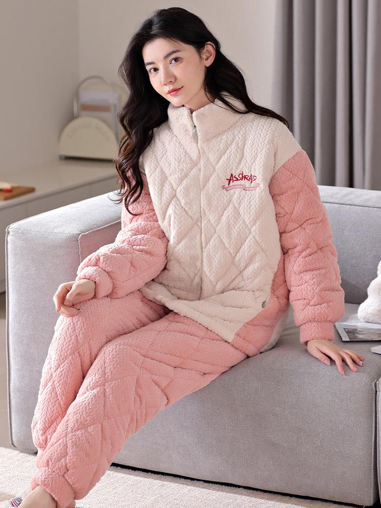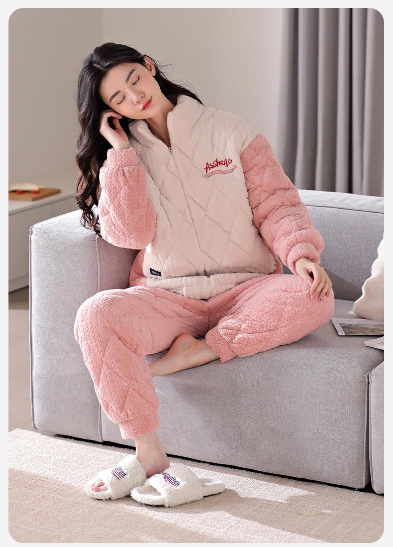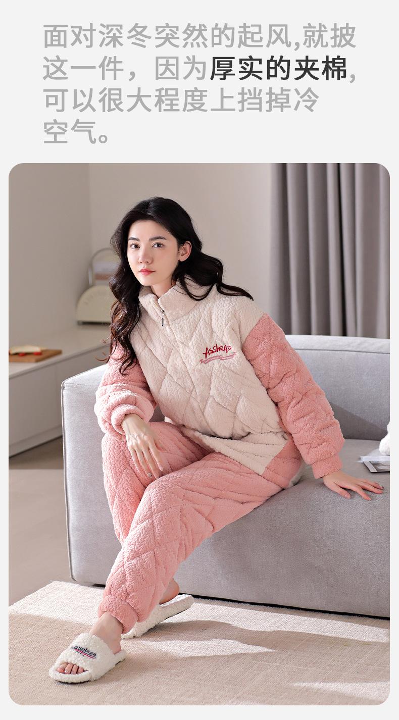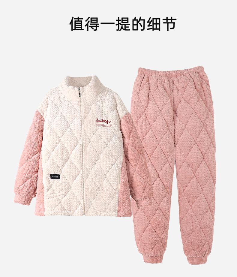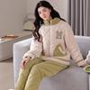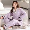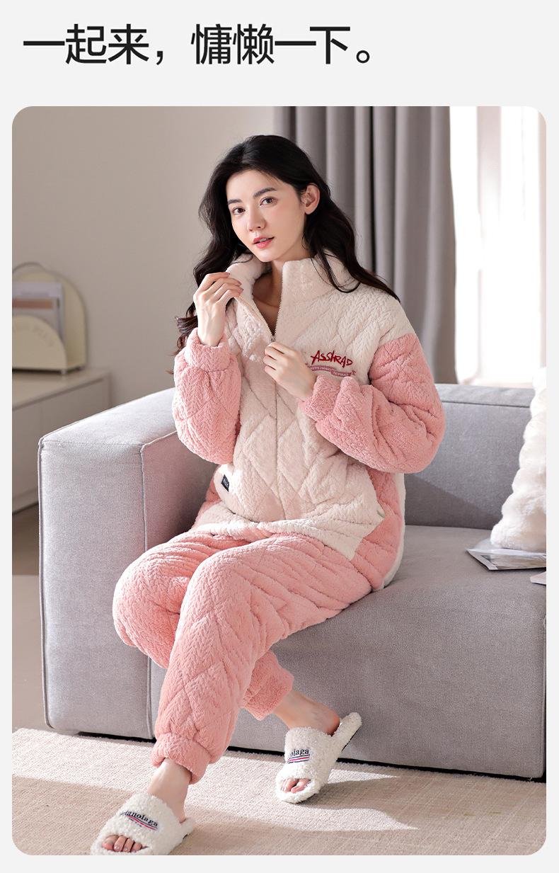 Pijama de invierno para mujer, cárdigan de tres capas acolchado de terciopelo de leche, cálido y grueso, traje informal para exteriores para el hogar