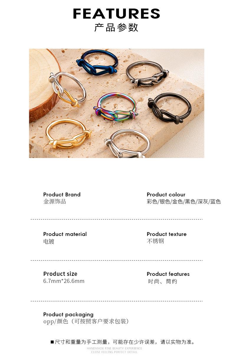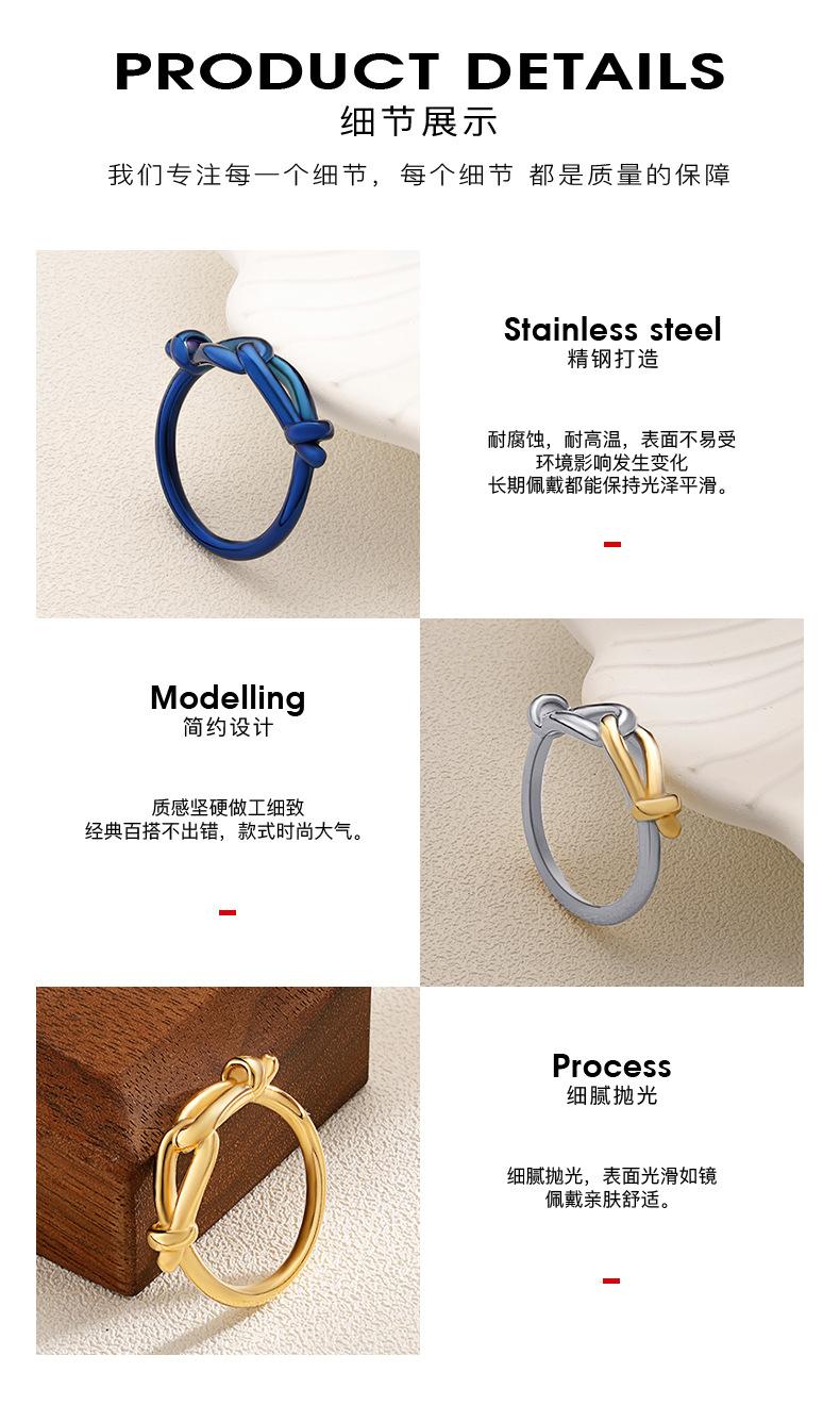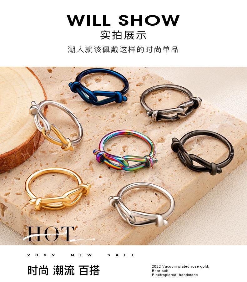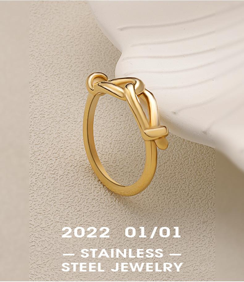 Anillo de Acero Inoxidable de Cara Lisa Estilo Nicho ins Forma de Hebilla de Doble Nudo de Cuerda Redondo Anillo de Acero de Titanio para Mujer Personalizado