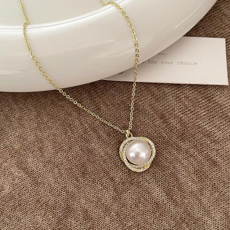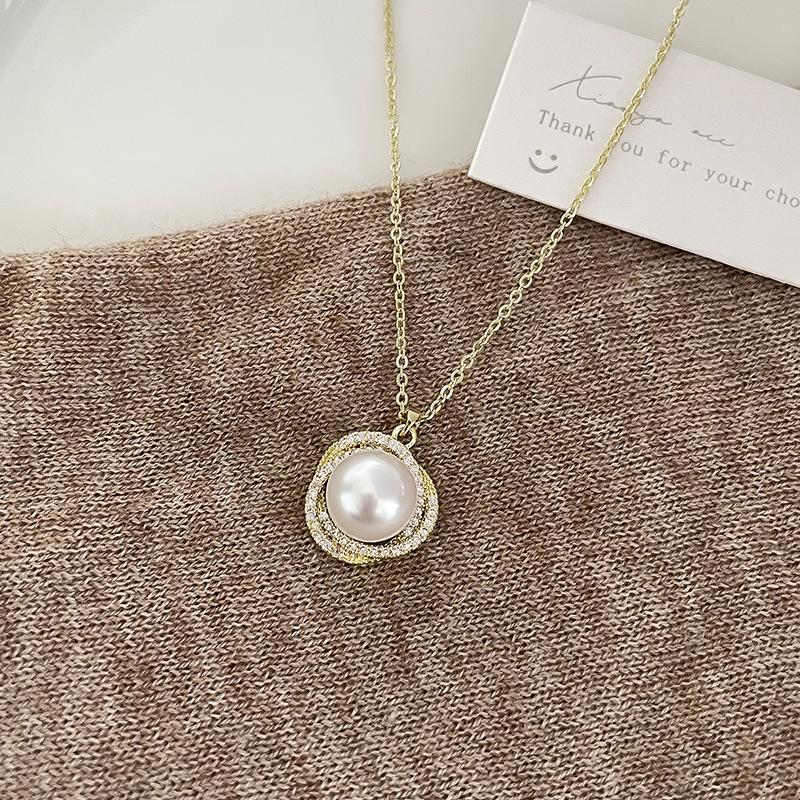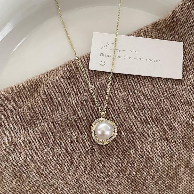 Metal zircon pearl necklace