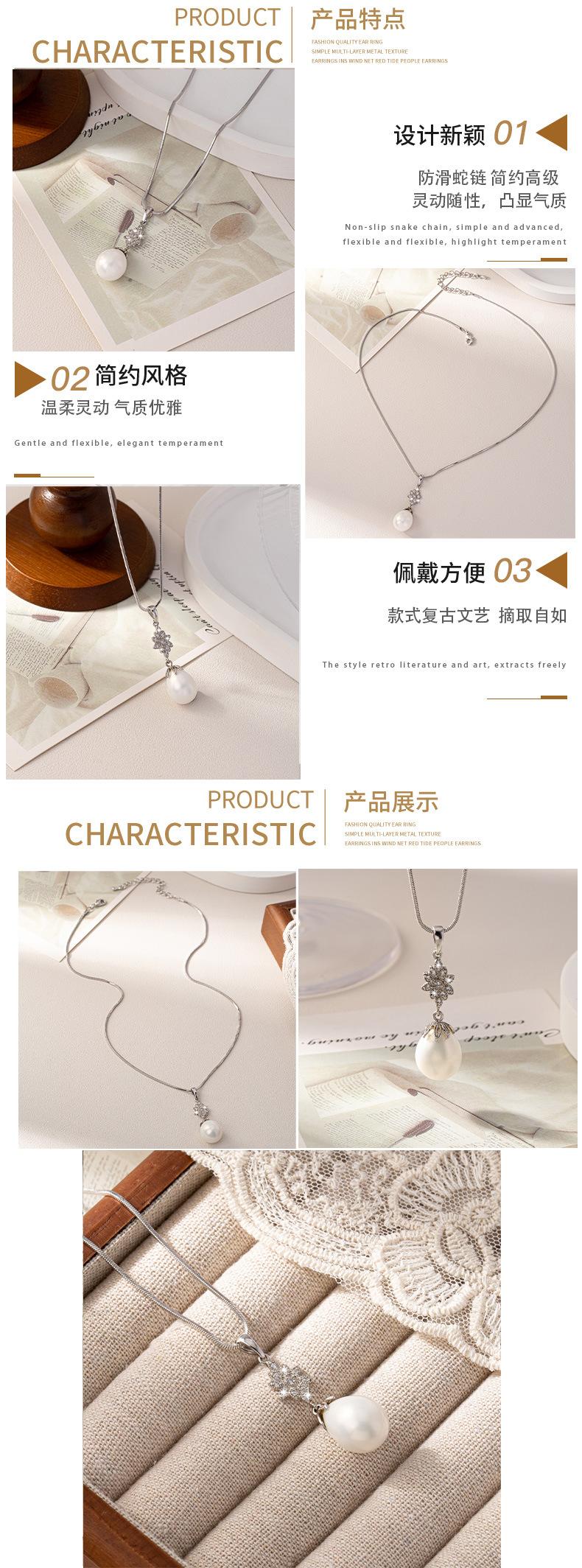 Collar de perlas retro francés para mujer, diseño de cadena de serpiente, cadena de clavícula de alta calidad, nuevo collar popular 2024