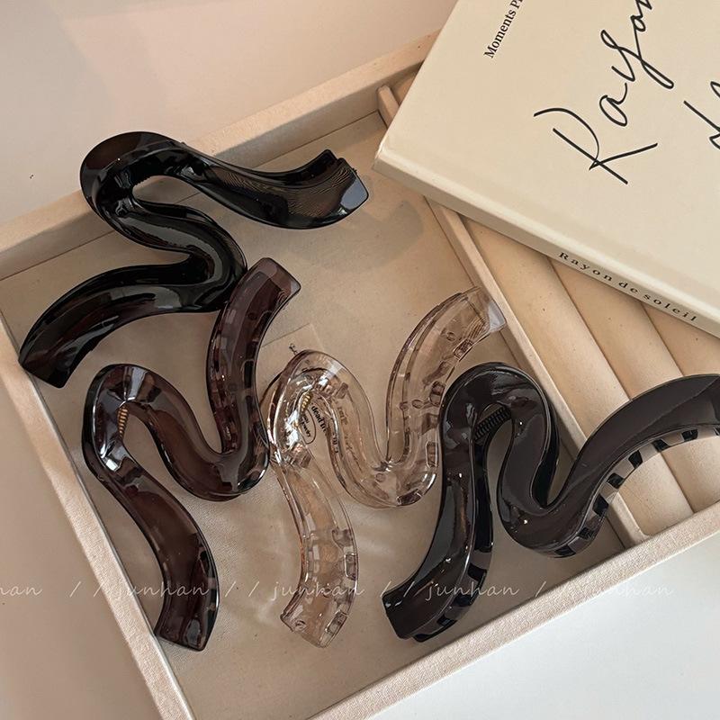 Pinza para el pelo con ondas geométricas negras sencillas, pinza para el pelo con forma de tiburón, horquilla para la parte posterior de la cabeza, tocados que combinan con todo, accesorios para el cabello