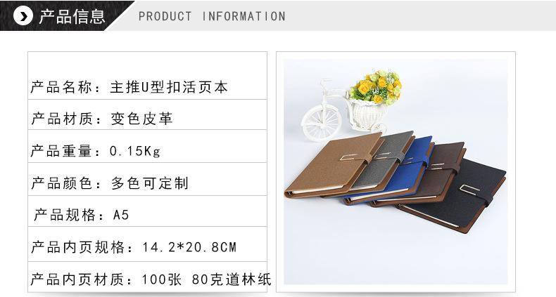 Bloc de notas de hojas sueltas A5, cuaderno de oficina de negocios, papelería, cuaderno de cuero grueso, logotipo personalizado, personalidad, hebilla en U, venta al por mayor