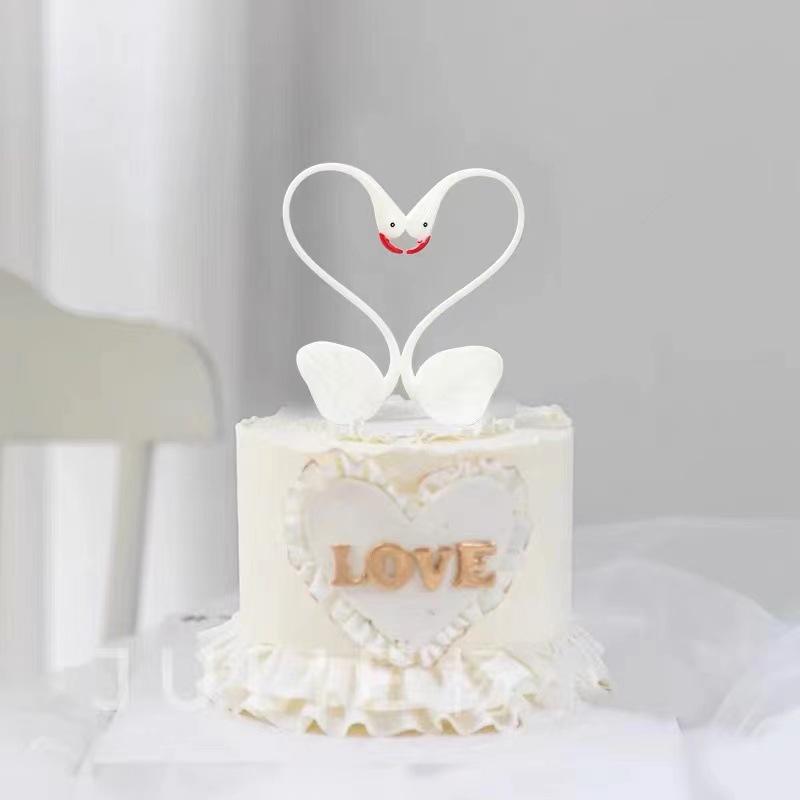 Decoración para hornear pasteles Tanabata Día de San Valentín Cisne blanco Cisne negro Adornos Fiesta de cumpleaños Decoración de mesa de postres