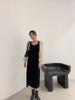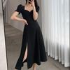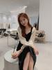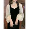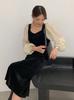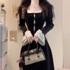 NUEVO vestido de terciopelo dorado estilo Hepburn abierto para mujer, primavera y otoño, manga abullonada francesa, cintura retro, temperamento 3381