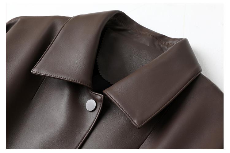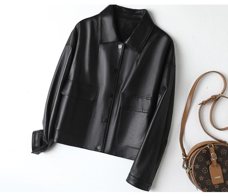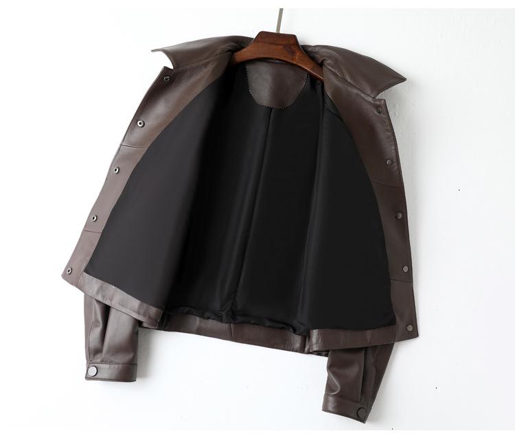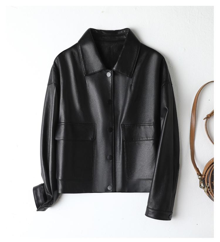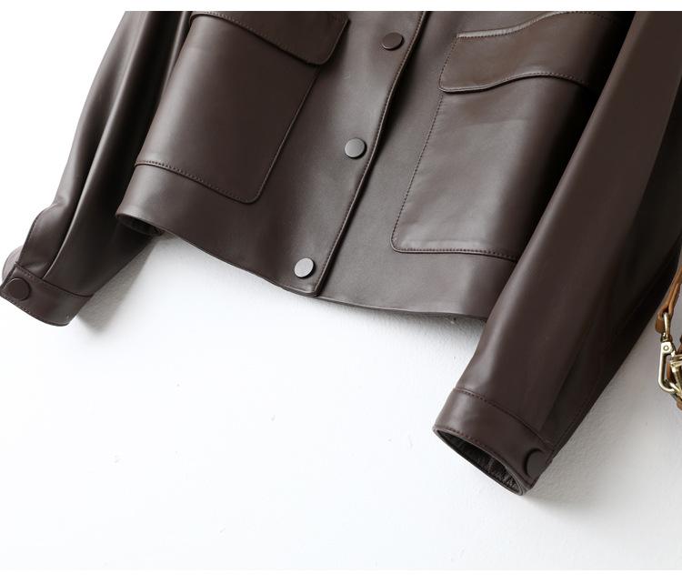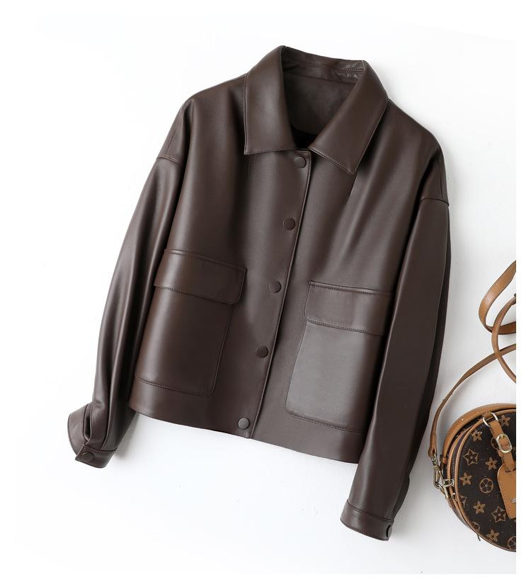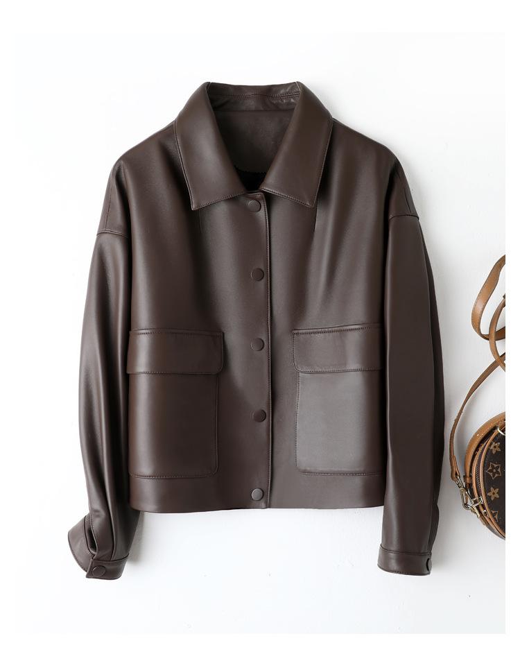 Chaqueta de Cuero Genuino de Primavera y Otoño para Mujer, Piel de Oveja Corte Corto Cuello Cuadrado Ajustado Abrigo Moderno Modelo Nuevo 2025
