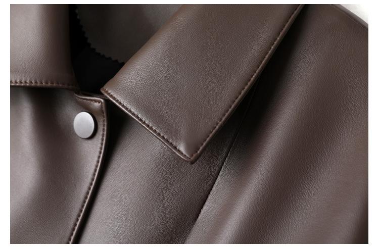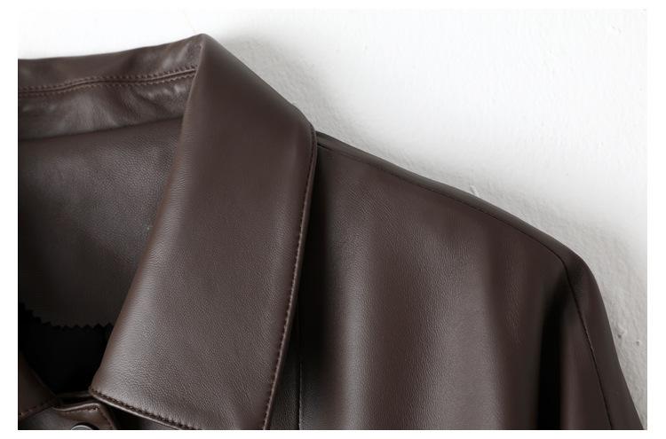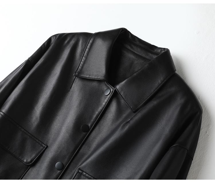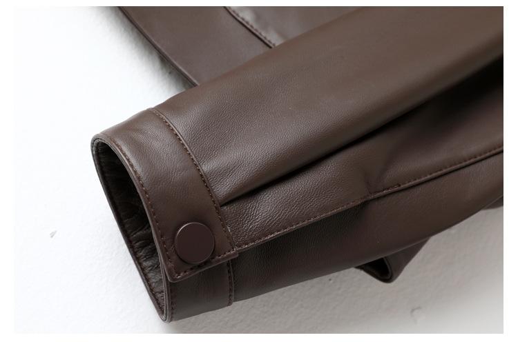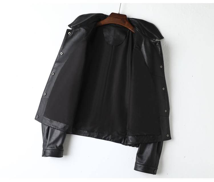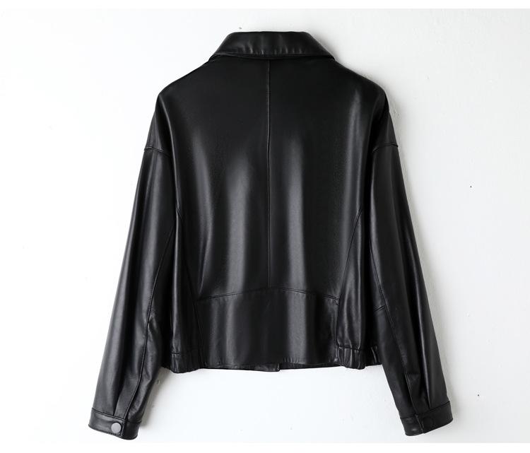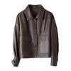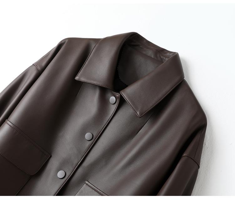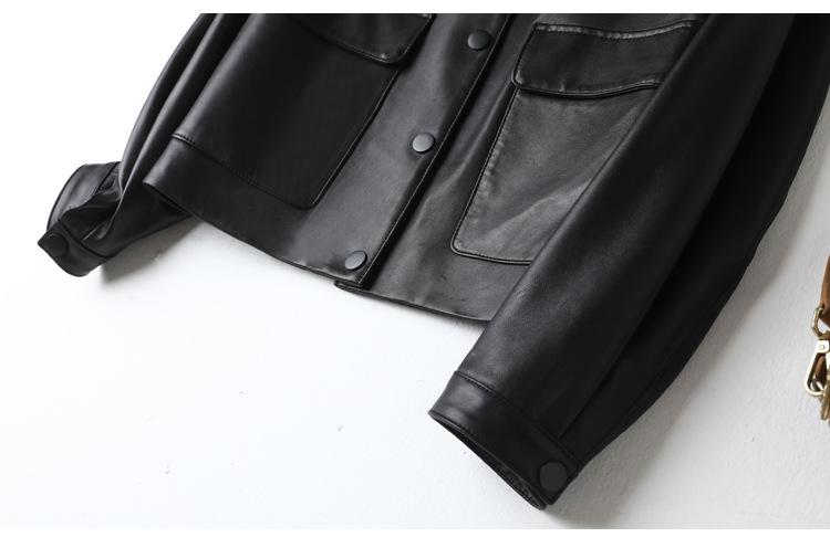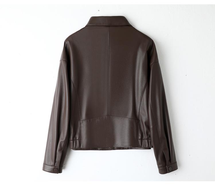 Chaqueta de Cuero Genuino de Primavera y Otoño para Mujer, Piel de Oveja Corte Corto Cuello Cuadrado Ajustado Abrigo Moderno Modelo Nuevo 2025