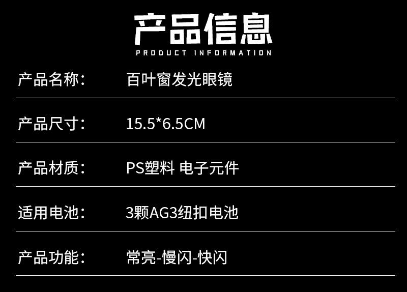 Función de gafas fluorescentes: flash rápido - flash lento - luz larga - apagado